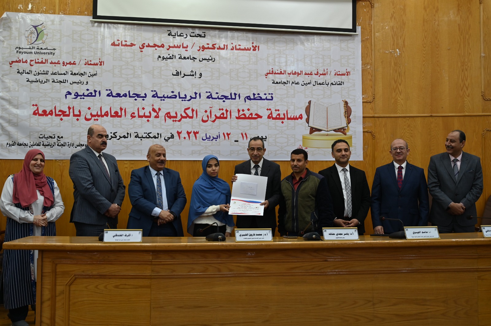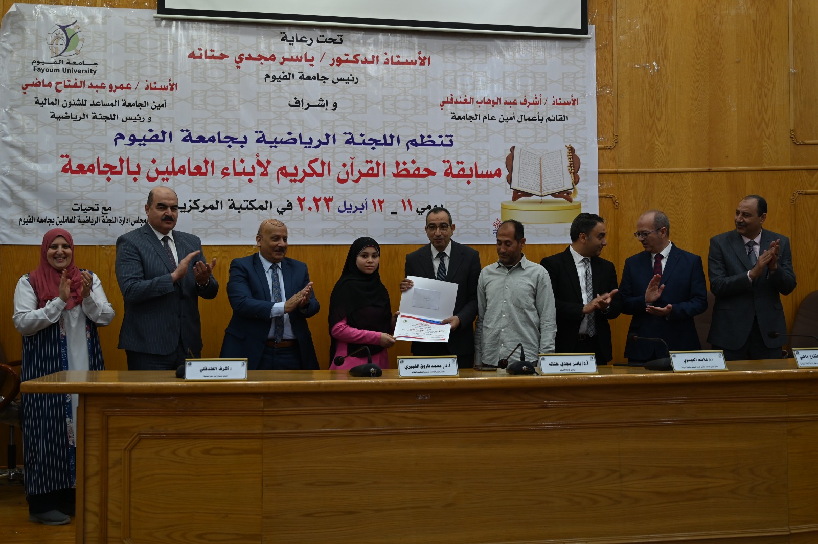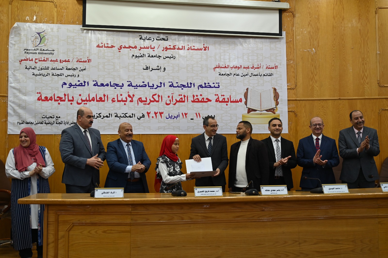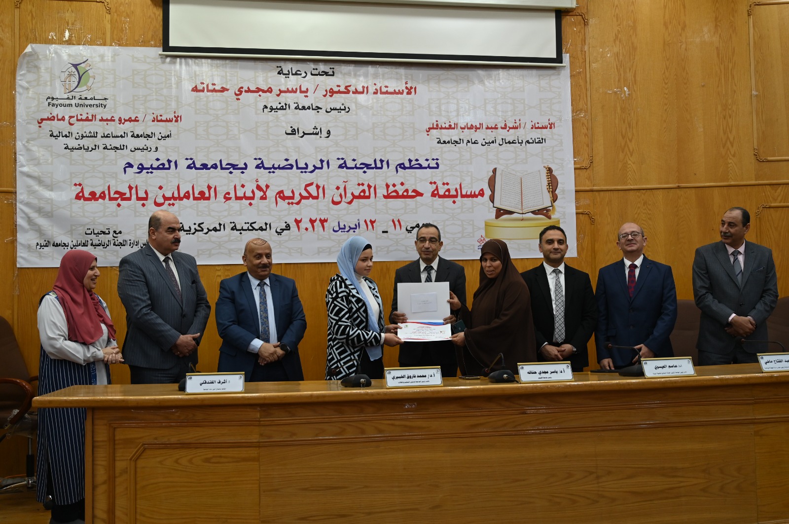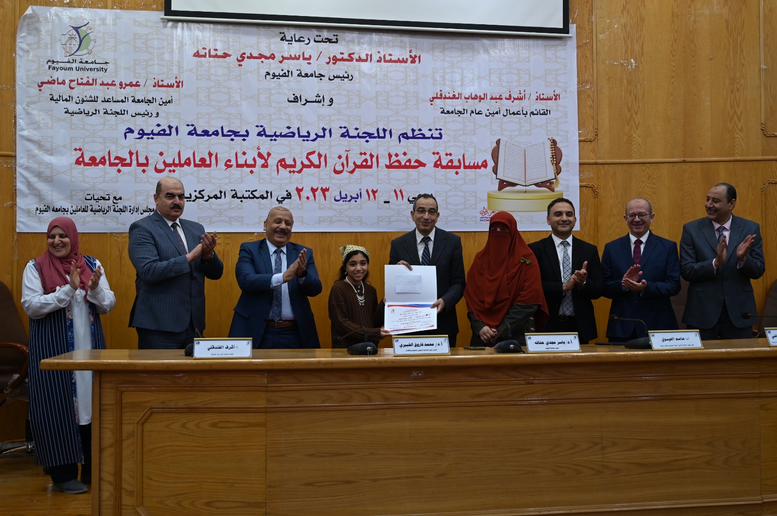رئيس جامعة الفيوم يكرم حفظة القرآن من أبناء الإداريين