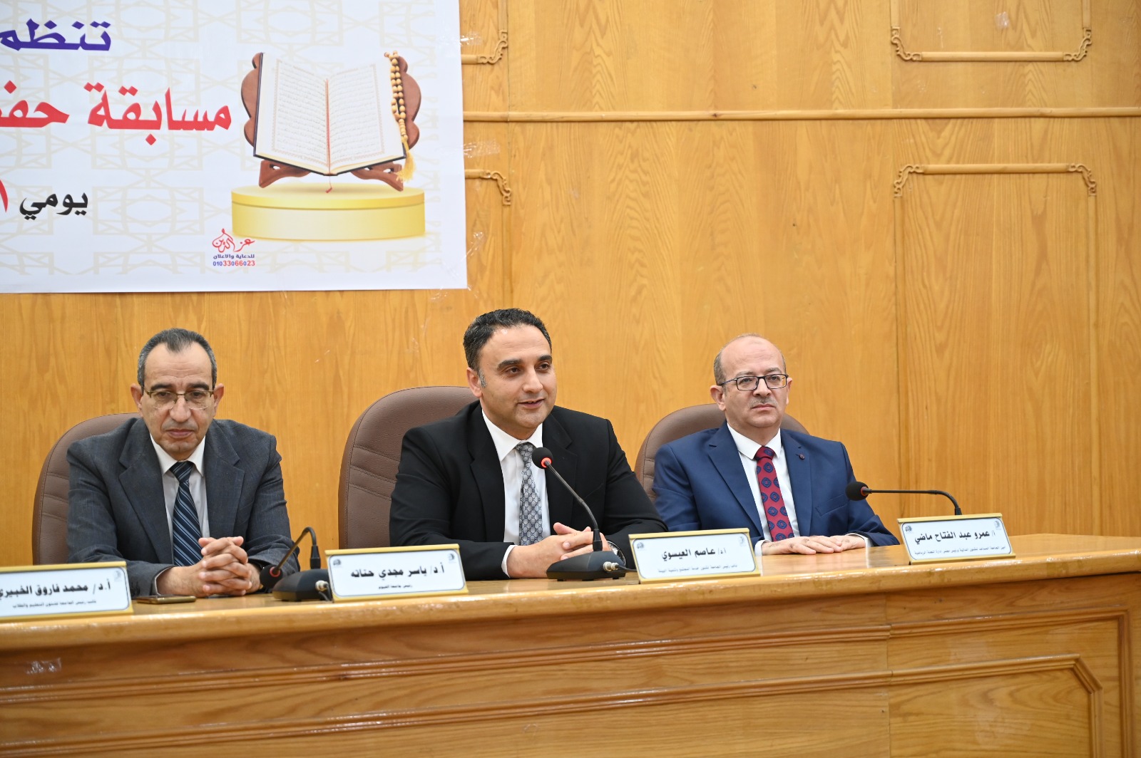 فيما قال نائب رئيس الجامعة لشئون التعليم والطلاب، أن الجامعة وقياداتها حريصون علي تكريم حفظة القرآن الكريم من أبناء الإداريين، لما في ذلك من كرامة وسبيل هداية لنا جميعا، مؤكدًا أن القرآن الكريم هو النص المعجز الذي يجب أن نحافظ على حفظه وتلاوته آناء الليل وأطراف النهار.