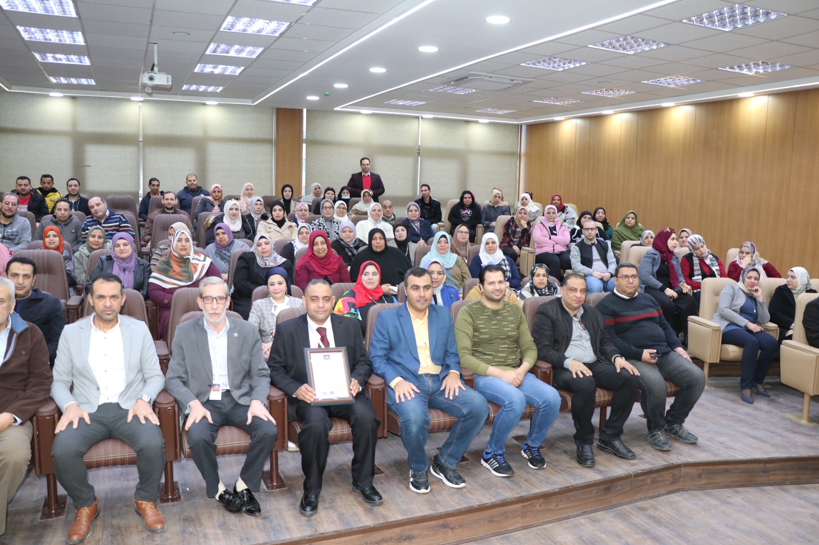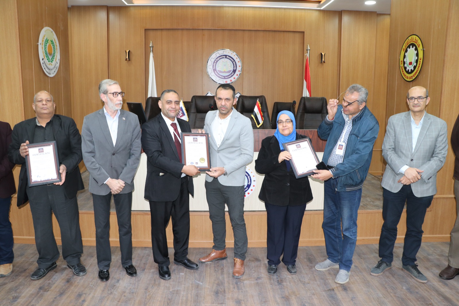 حيث تسلم الدكتور محمد عبد العظيم عميد الكلية شهادات الأيزو 9001 - 14001 – 45001 في مجالات نظم إدارة الجودة، ونظم إدارة البيئة، ونظم إدارة السلامة والصحة المهنية في حفل بقاعة الدكتور رشاد البدراوي بحضور وكلاء الكلية ورؤساء الأقسام العلمية ومديري البرامج النوعية وفريق عمل إعداد ملفات الأيزو وأعضاء الجهاز الإداري.