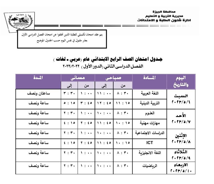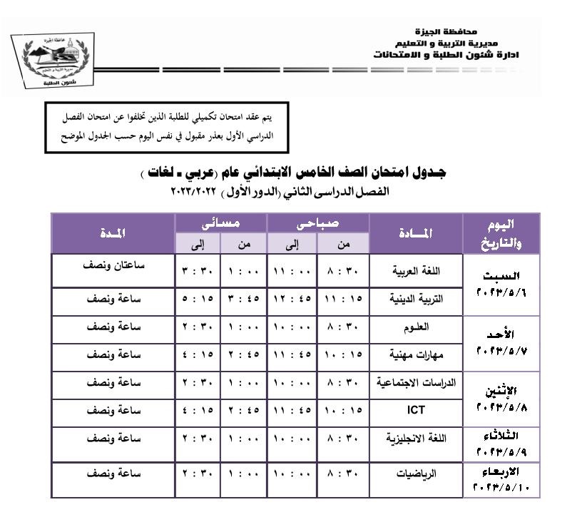 جدول امتحانات نهاية العام بالجيزة لجميع الصفوف (صور)