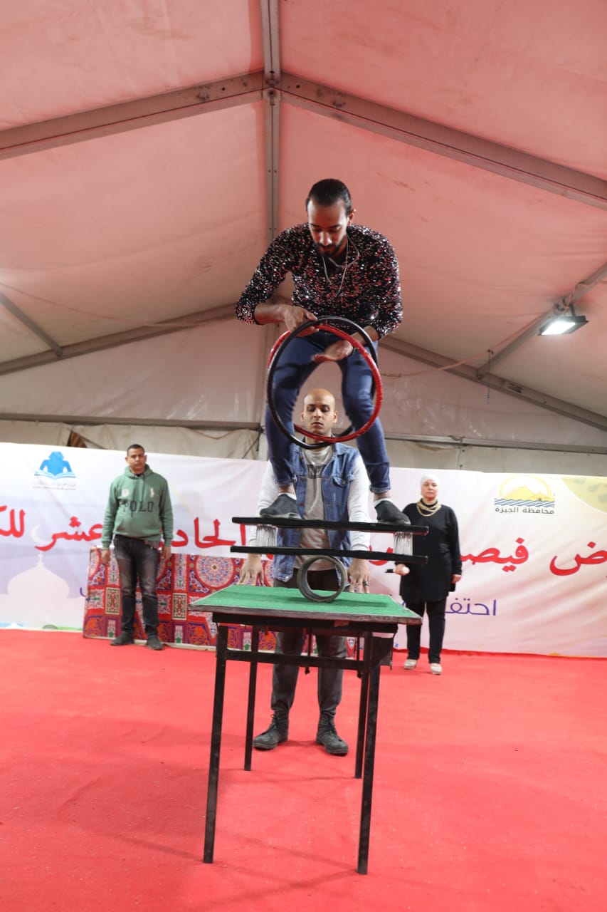 وقدمت فرقة السيرك القومي التابعة للبيت الفني للفنون الشعبية، مجموعة من العروض المختلفة، والتي تفاعل معها الجمهور الحاضر في المعرض بآخر أيامه.