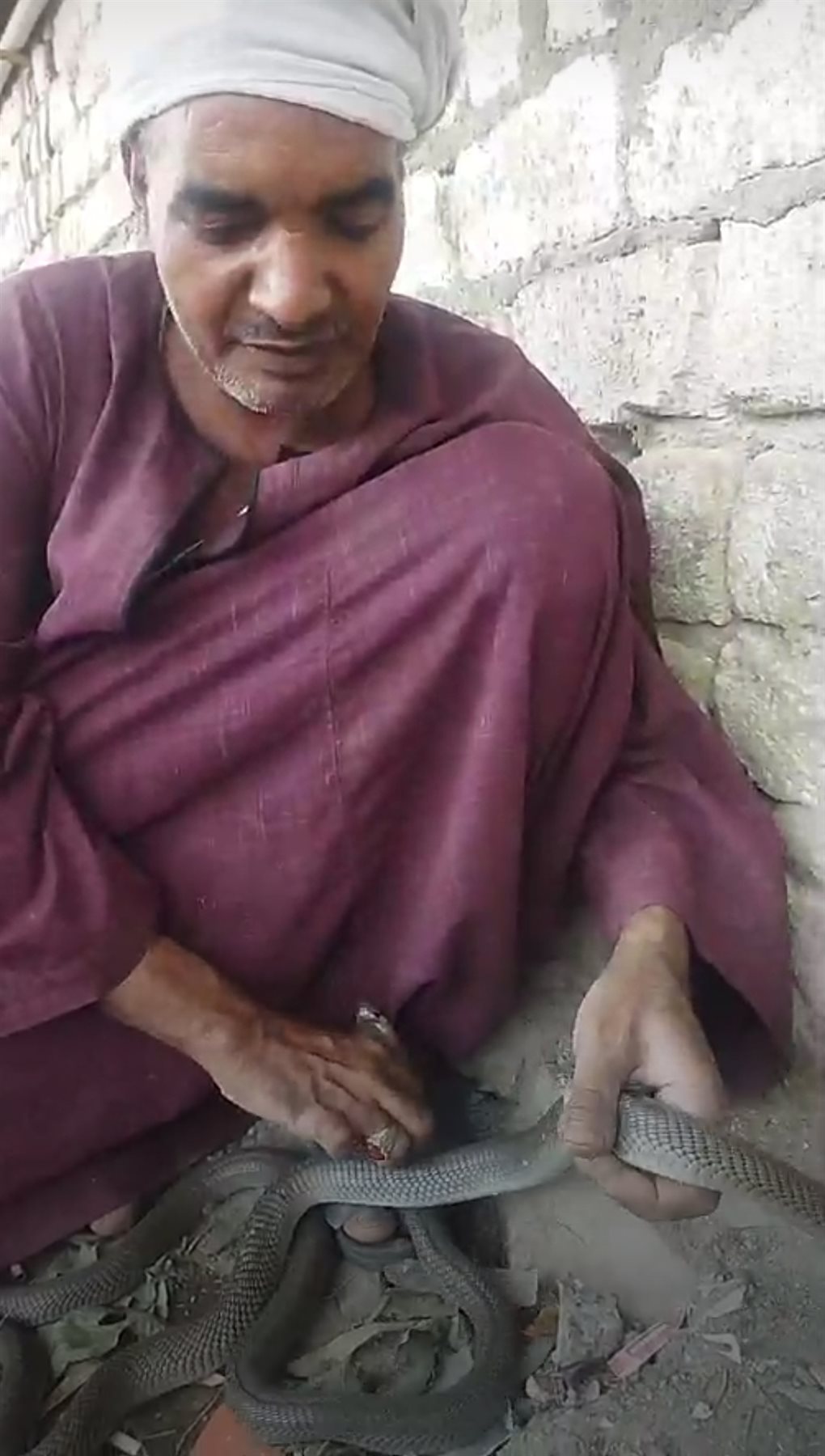 وفي قرية العزازية التابعة لمركز دشنا، شمال محافظة قنا، جلس الرجل يسند بكتفه على جدران أحد المنازل، وبيده الطعم، وبدأ عملية الاصطياد، ليخرج ثعبانا تلو الآخر، انتظارا وتمهيدا للصيد الثمين، أحد ثعبان الكوبرا أخطر الأفاعي.