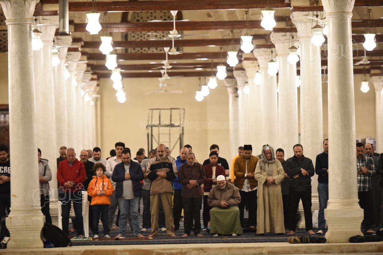 خشوع وتضرع المصلين في تراويح ليلة 23 رمضان بمسجد عمرو بن العاص (صور)