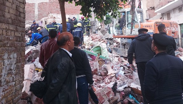 بالفحص تبين أن العقار مكون من طابق أرضي و3 طوابق علوية وانهياره حتى سطح الأرض بالكامل وأسفر عن إصابة 5 أشخاص بينهم سيدتان وطفلان ورجل جرى استخراجهم من أسفل العقار وجارٍ البحث عن ضحايا عالقين أسفل العقار المنهار.