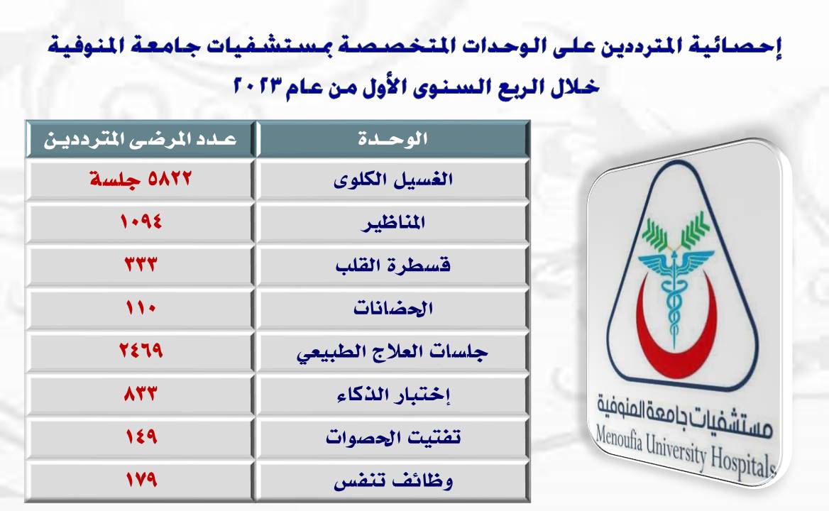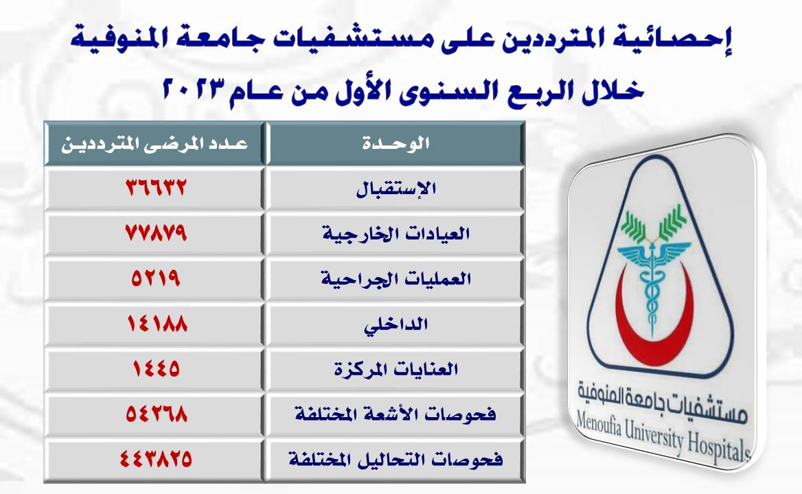 36632 حالة استقبلتها طوارئ مستشفيات جامعة المنوفية منذ بداية 2023