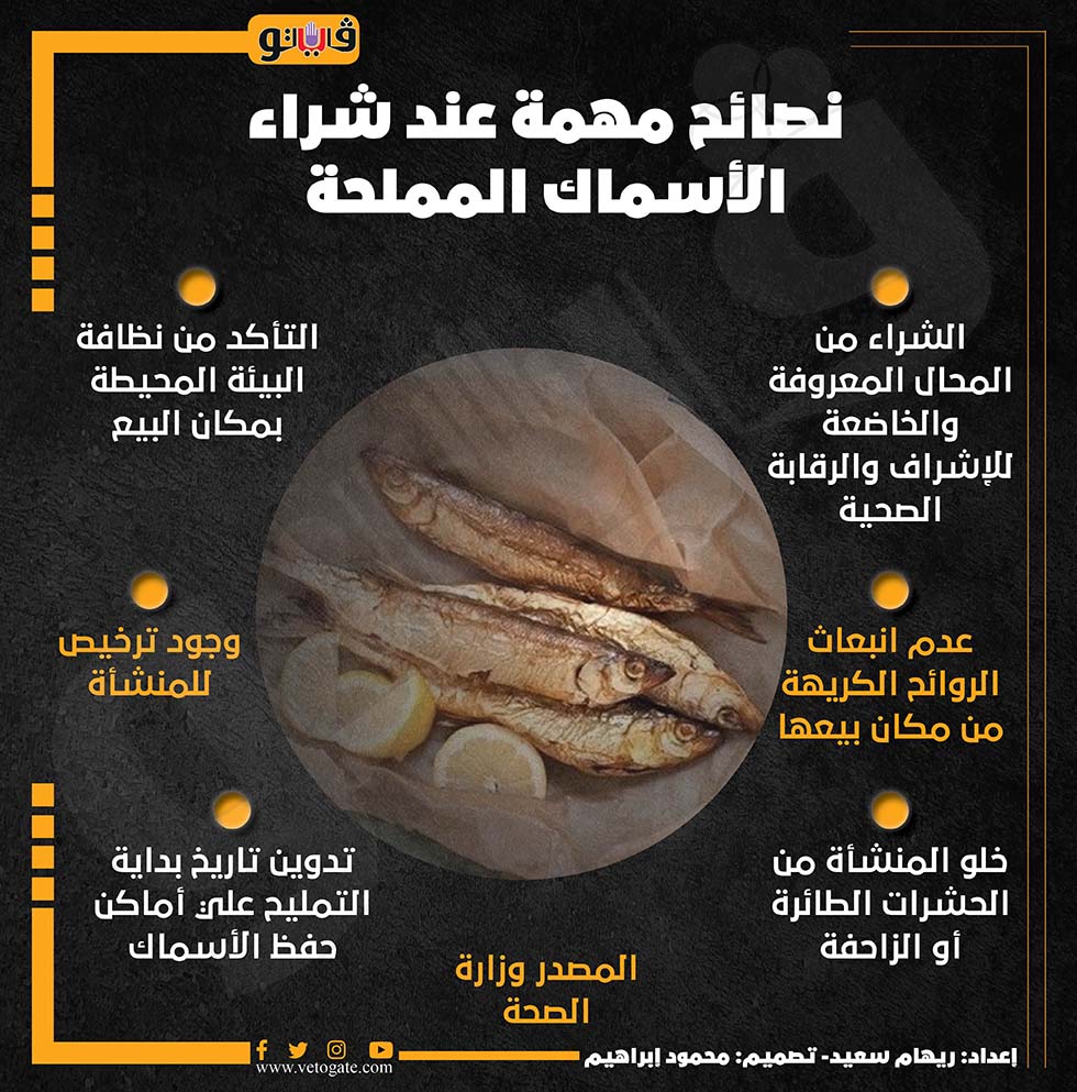 نصائح مهمة عند شراء الأسماك المملحة (انفوجراف) السبت 15/أبريل/2023 - 09:17 م 4/15/2023 9:17:41 PM نصائح عند شراء الفسيخ ريهام سعيد شارك طباعة 18 حجم الخط شارك طباعة الأسماك المملحة والمدخنة الأسماك المملحة وزارة الصحة مرضى الضغط