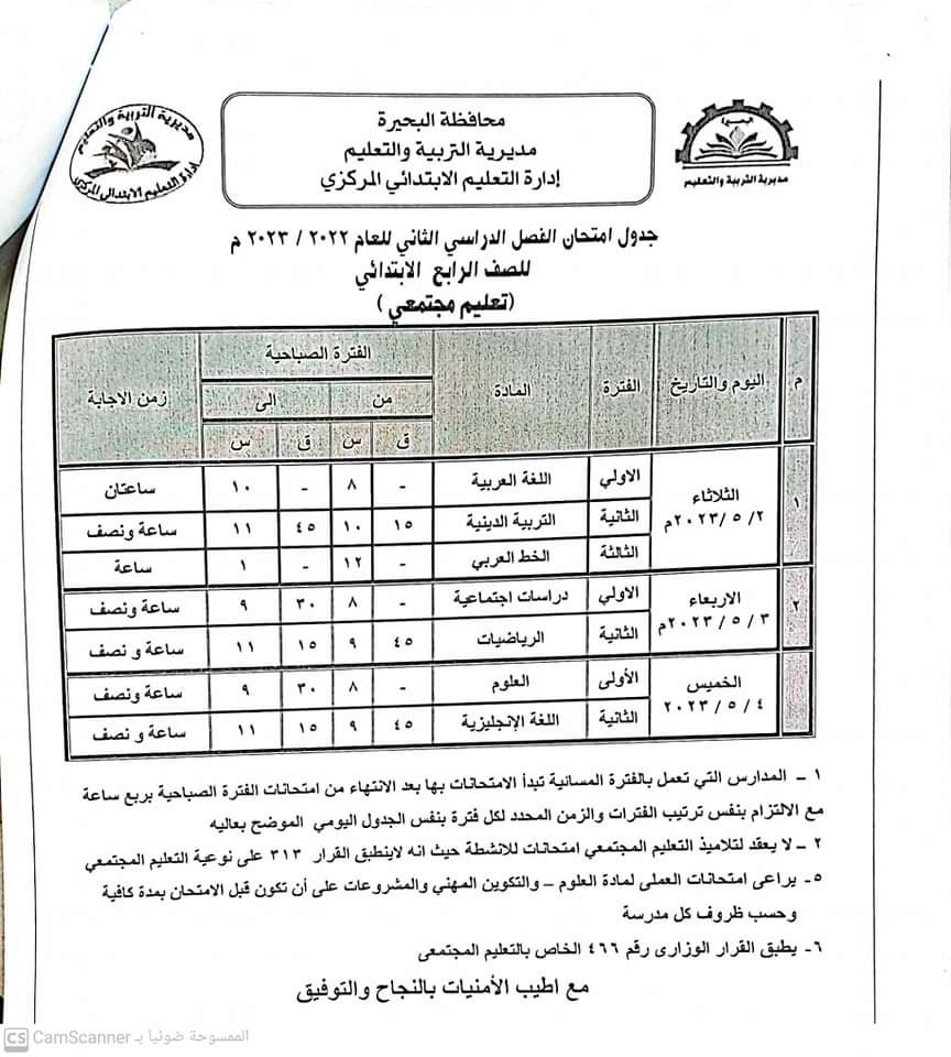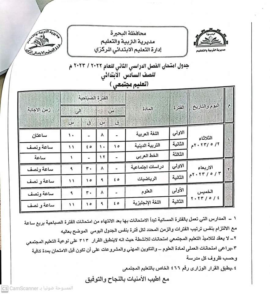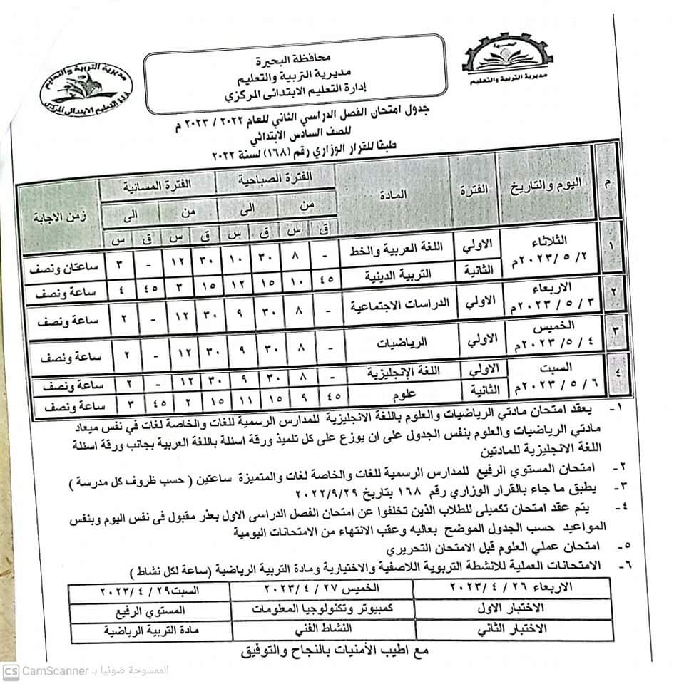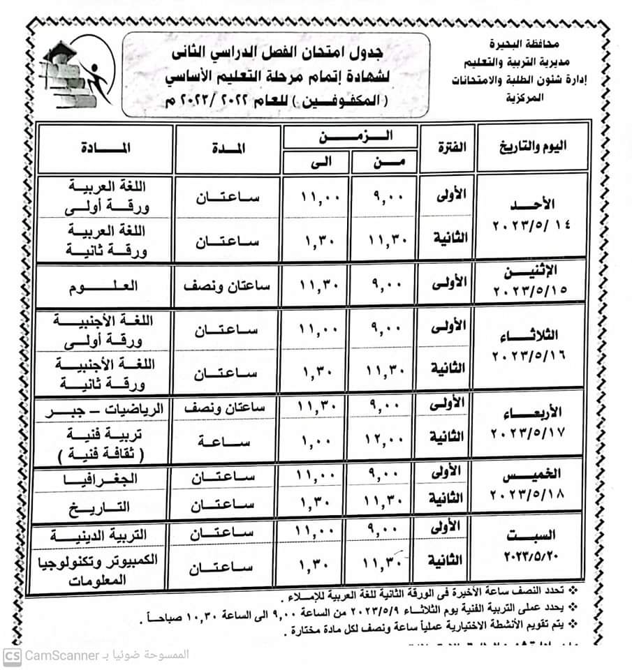 اعتماد جدول امتحانات الفصل الدراسي الثاني للعام الدراسي الحالي بالبحيرة (صور)