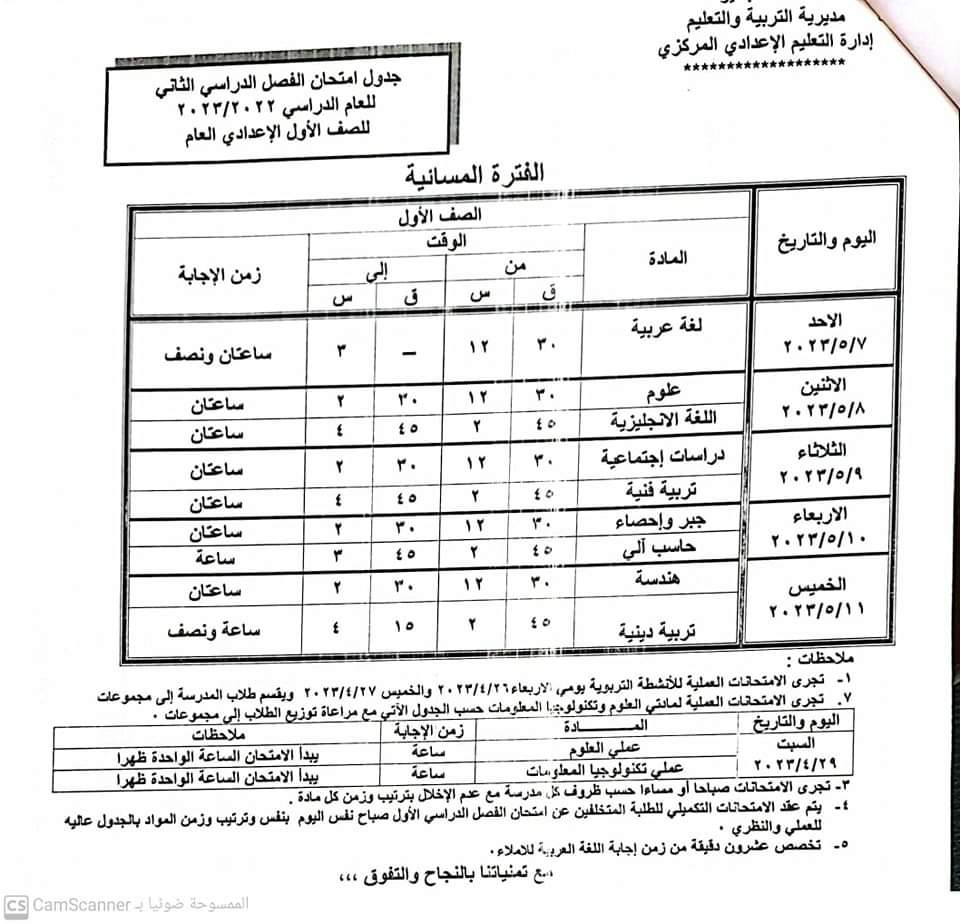وتبدأ امتحانات الصف الثالث الإعدادي "المهني"، من يوم الأحد الموافق ١٤ مايو وحتى الخميس ١٨ مايو وتجري إمتحانات الشهادة الإعدادية للمكفوفين من يوم الأحد الموافق ١٤ مايو وحتى السبت ٢٠ مايو والشهادة الإعدادية للصم وضعاف السمع من الأحد ١٤ مايو وحتى الخميس ١٨ مايو.
