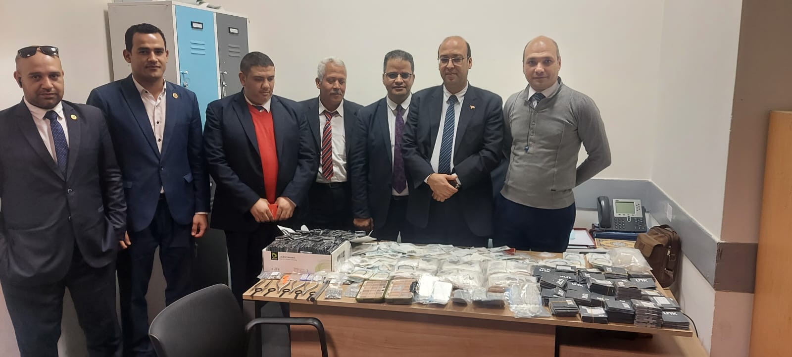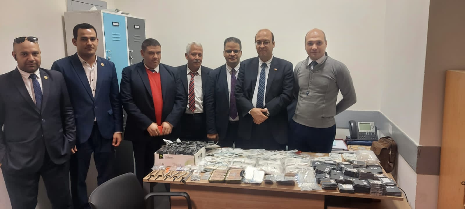 وقام أحمد أبو بكر مدير الجمرك بتكليف لجنة مكونه من عبد الله حمدي واسلام ربيع ماموري الجمرك، وطارق فرج من إدارة الأمن الجمركي، لتفتيش الراكب ذاتيا مما اسفر عن ضبط كمية اخري من نفس المستلزمات أخفاها الراكب في ملابسه التي يرتديها، وتم تشكيل لجنة مكونة من محمد نبيل طلب ووليد حجاج ومحمد فتح الله والدكتور مؤمن حسن مآمير الجمرك، وذلك لجرد وعد وتصنيف وتحريز المضبوطات التي بلغت ١٦٤٦ وحدة وكيس وعبوة من مستلزمات طب الأسنان.