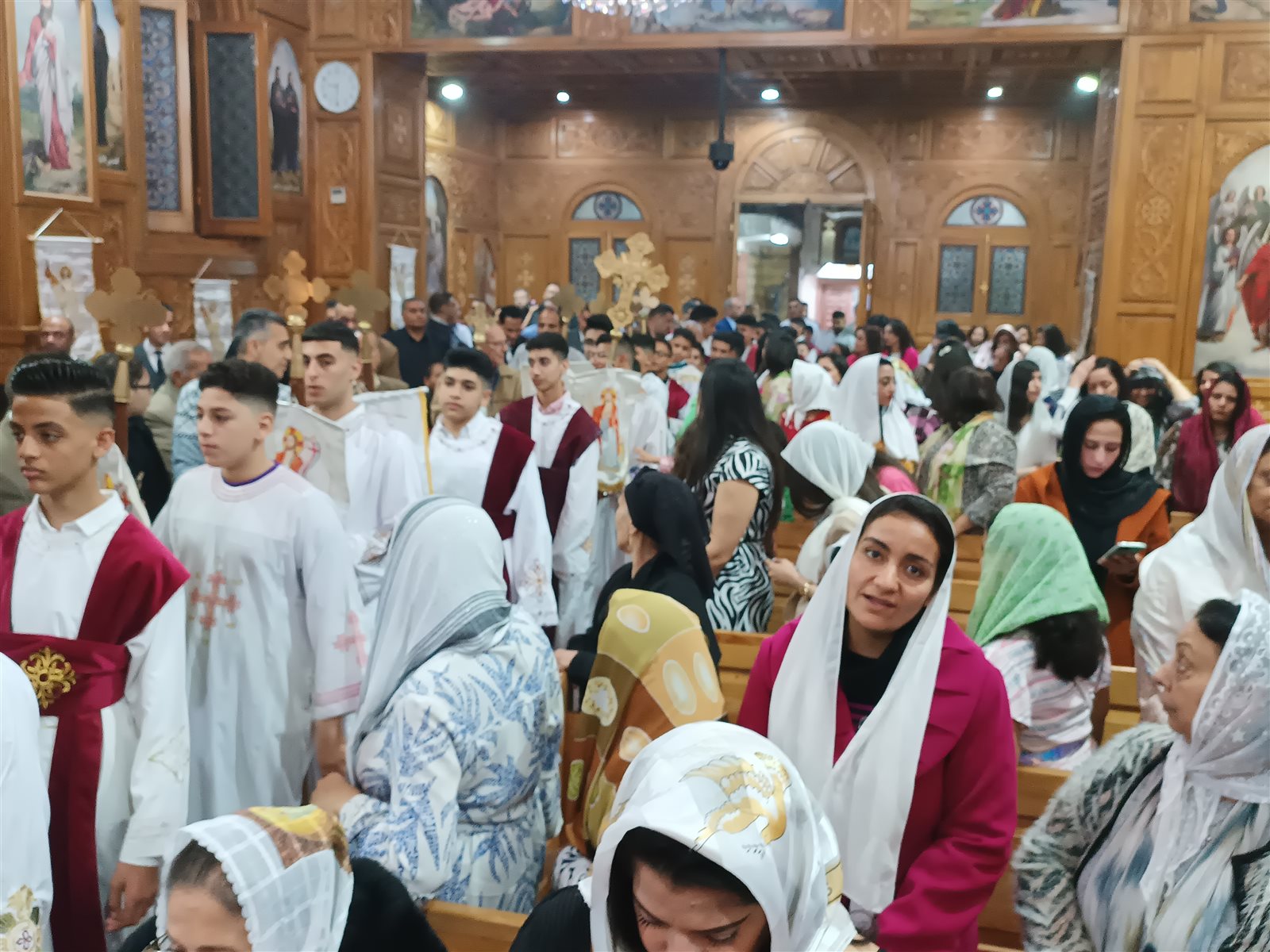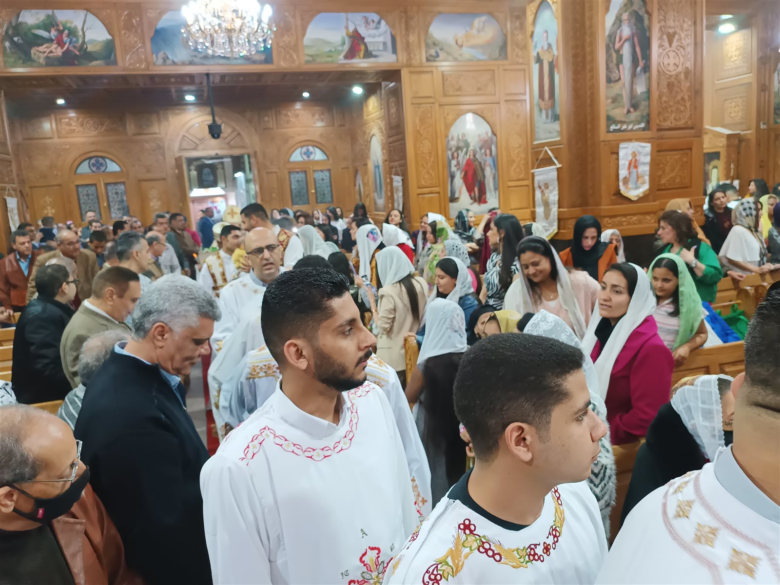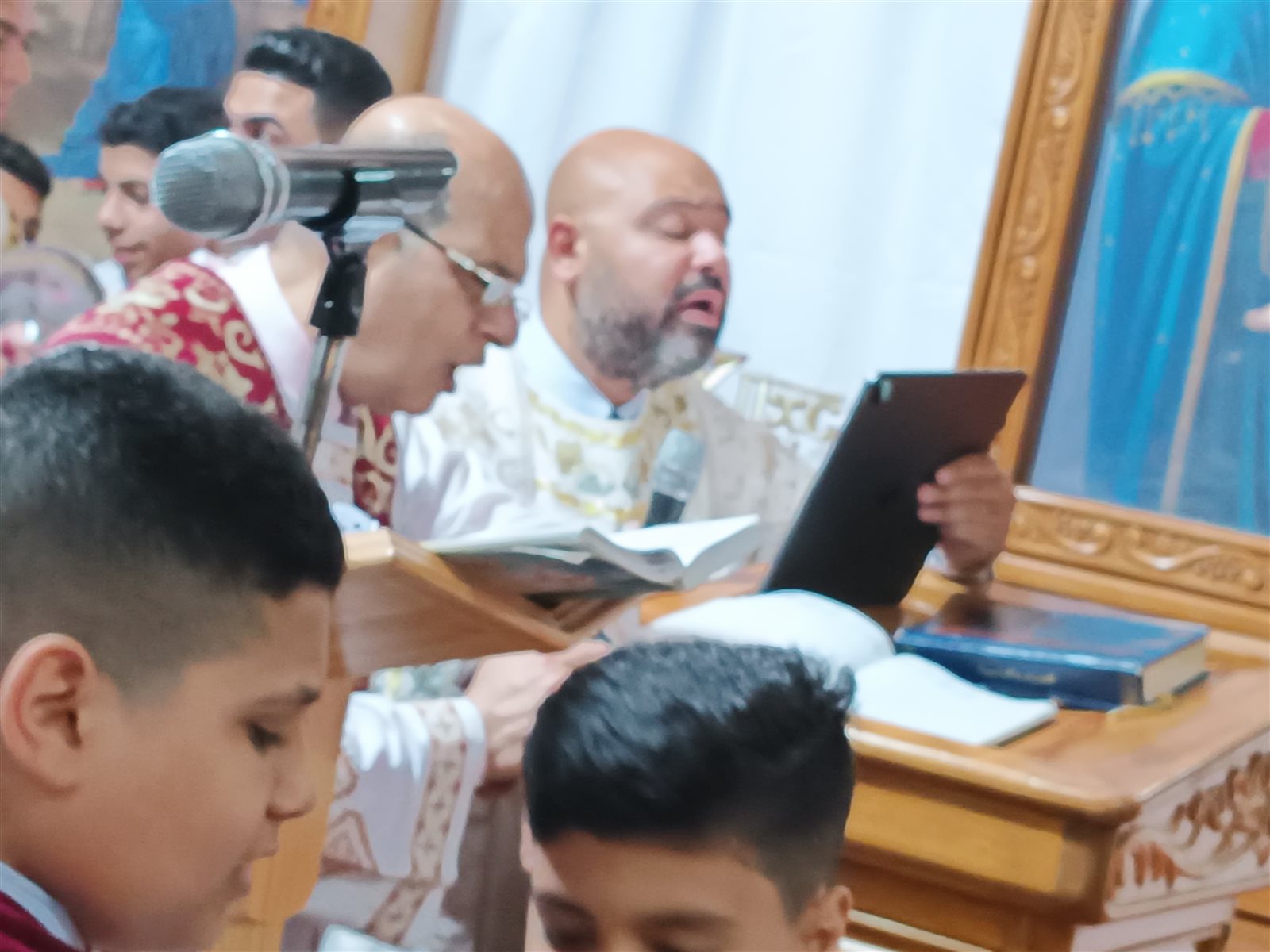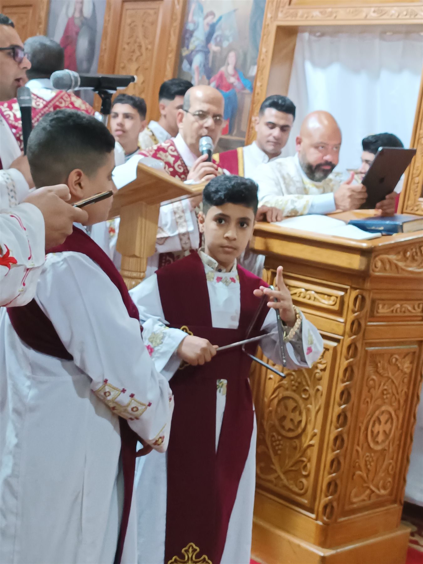 وظهر صغار الشمامسة بالزي الأبيض الخاص بهم خلال القداس، وارتسمت الإبتسامة على وجوههم في أجواء من الفرحة، وبدوا بملابس البيضاء وابتسامهم أثناء أداء القداس أشبه بالملائكة، وأضافوا للأجواء حالة من السعادة والبهجة".