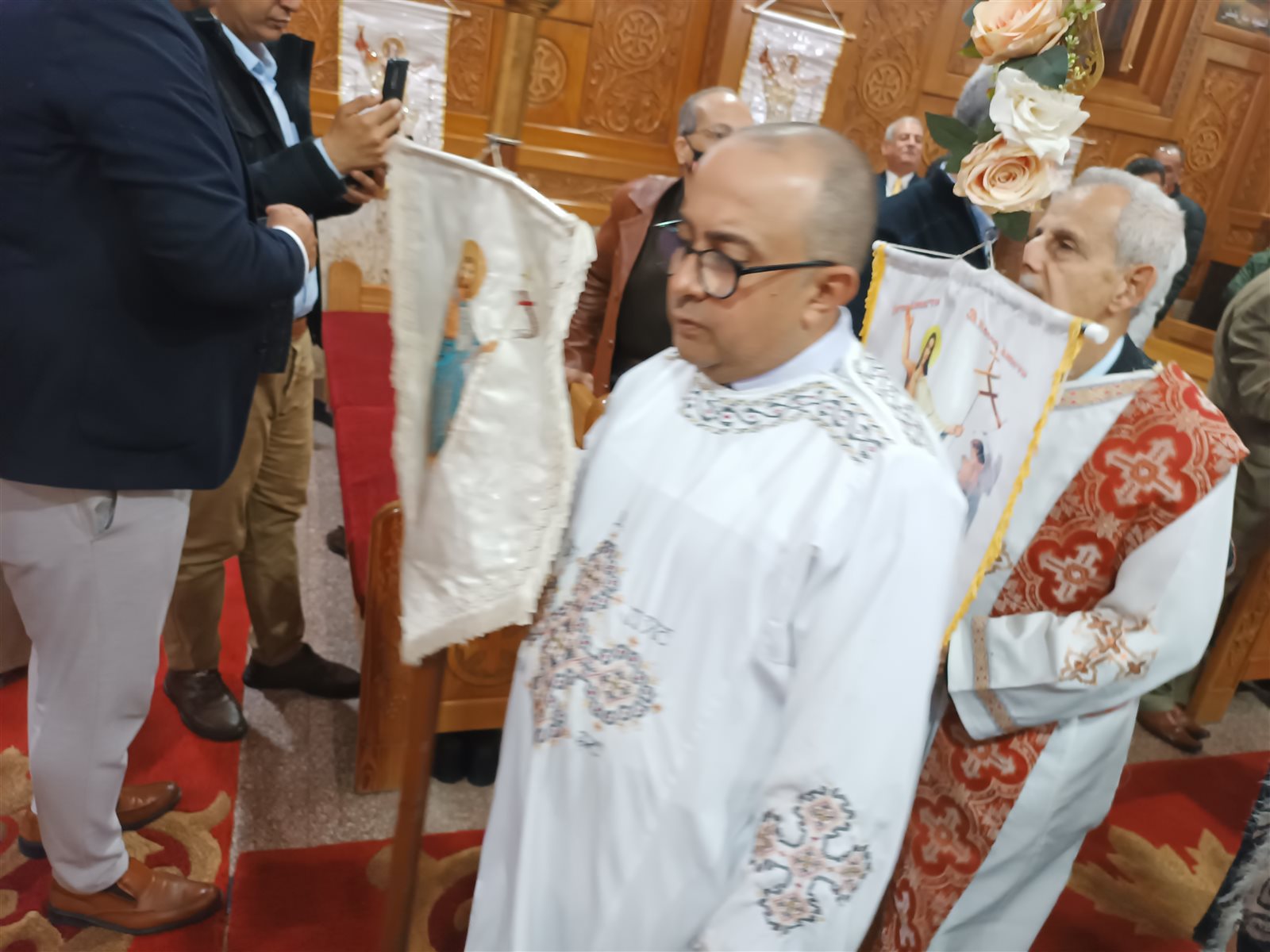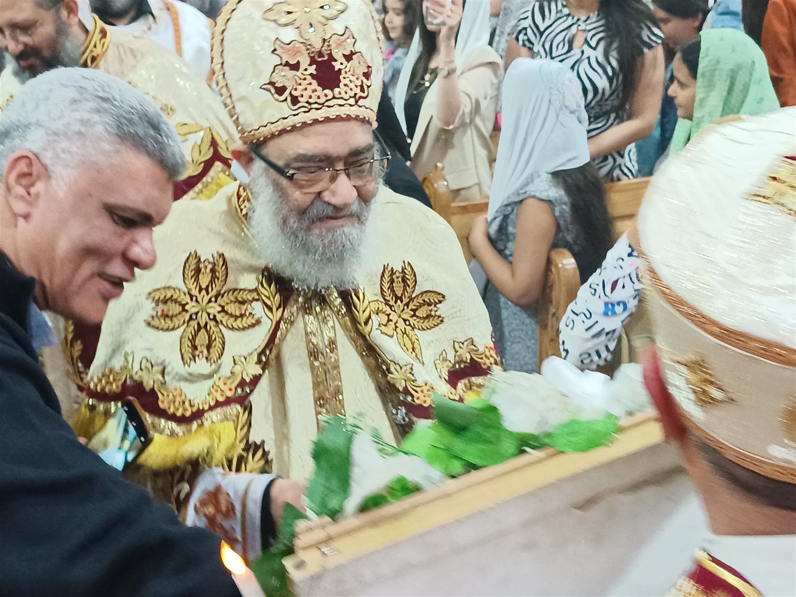 أدى القداس كهنة الكنيسة القمص بولا سعد، والقس بيمن صابر، والقس أرميا فهمي، بمشاركة شمامسة الكنيسة والعشرات من شعب الكنيسة من الأخوة الأقباط، الذين تواجدوا من قبل بدء القداس وحرصوا على المشاركة في القداس حتى انتهائه.