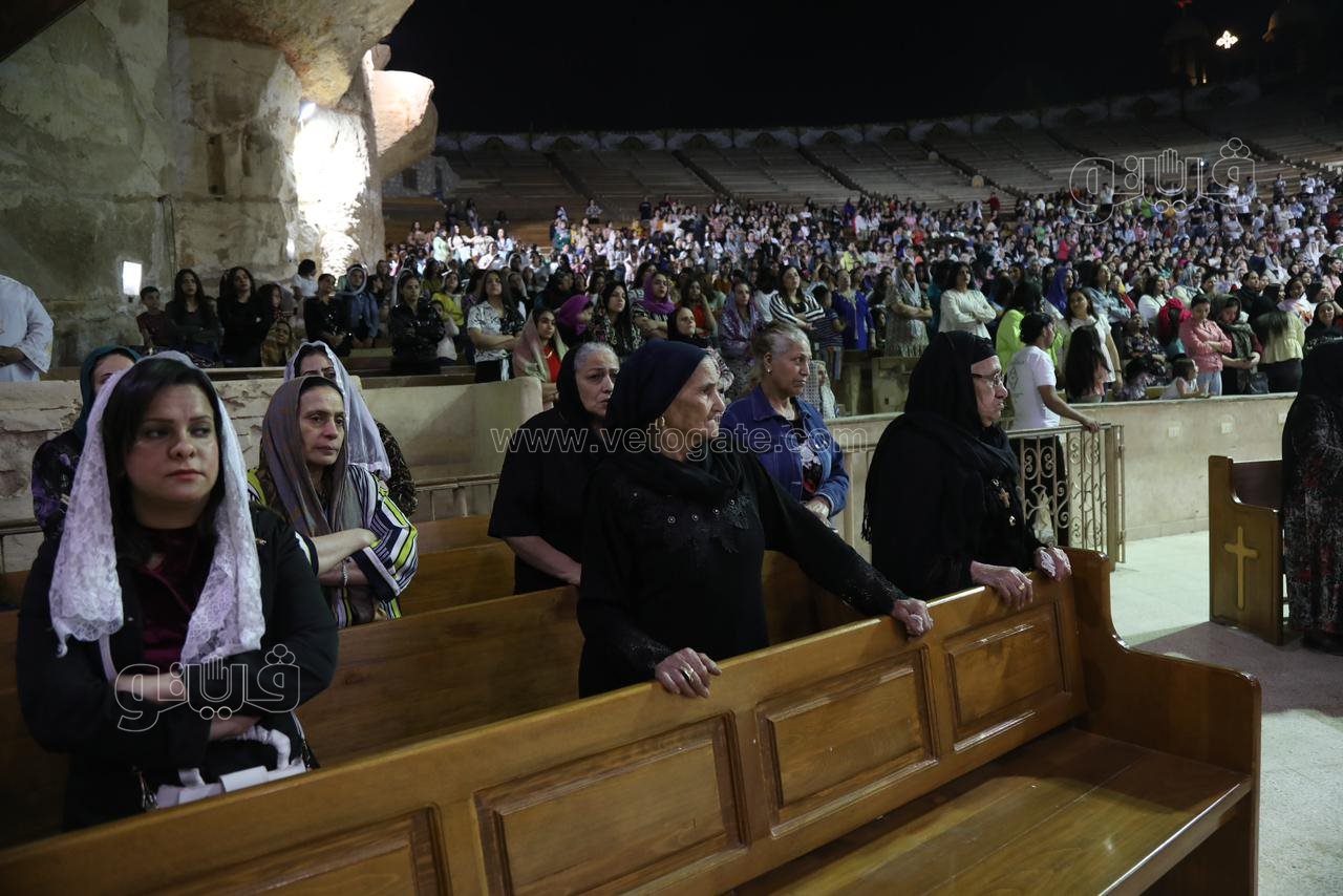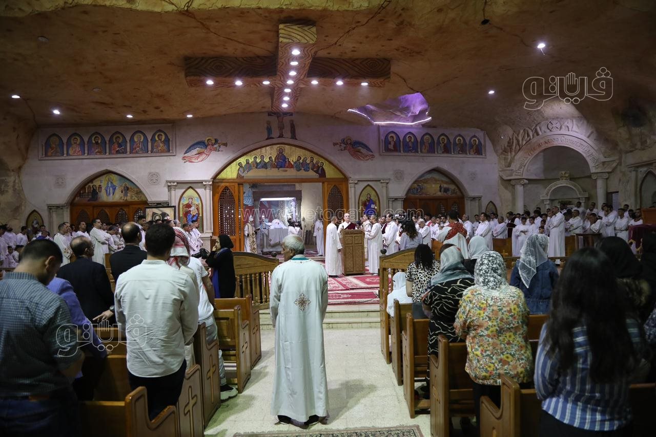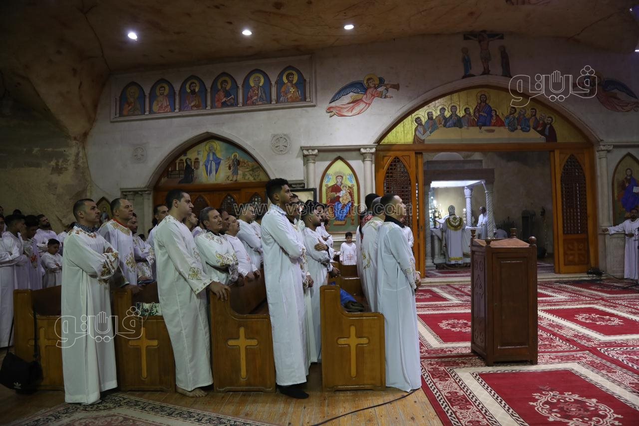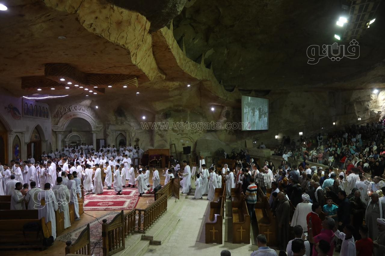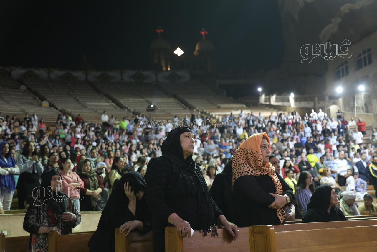 صلى عشرات الأقباط مساء اليوم السبت، قداس عيد القيامة المجيد من دير الأنبا سمعان الخراز بجبل المقطم.