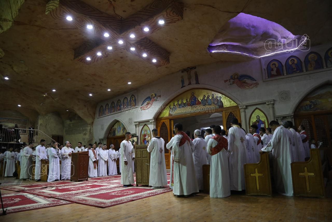 عشرات الأقباط يصلون قداس القيامة من دير سمعان الخراز (صور)