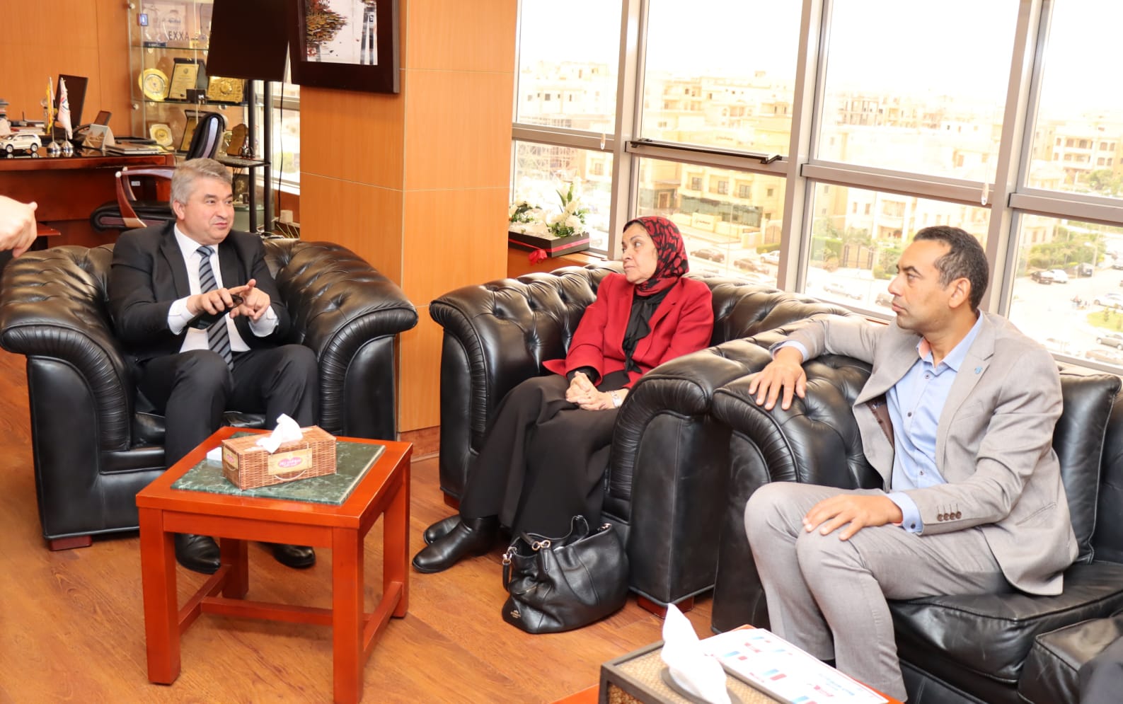 عقد المهندس محمد عبد الكريم، رئيس الهيئة العامة للتنمية الصناعية، اجتماعا مع أحمد رزق، القائم بأعمال مدير مكتب منظمة الأمم المتحدة للتنمية الصناعية "اليونيدو" في مصر، والدكتورة يمن الحماقي، أستاذ الاقتصاد بجامعة عين شمس، لبحث التعاون المشترك بهدف تعزيز القدرات التنافسية للقطاع الصناعي لتصبح مصر مركزًا إقليميا للتصنيع، بالإضافة لدراسة سبل تعزيز جهود التنمية الصناعية في مصر بالاستعانة بدعم المنظمات الدولية والشق البحثي والأكاديمي.
