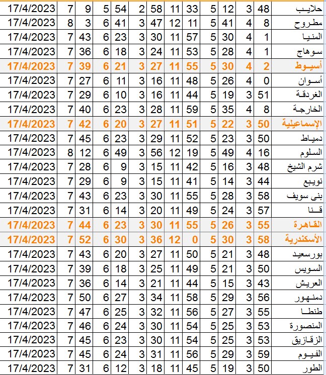 مواقيت الصلاة اليوم بتوقيت أسيوط
