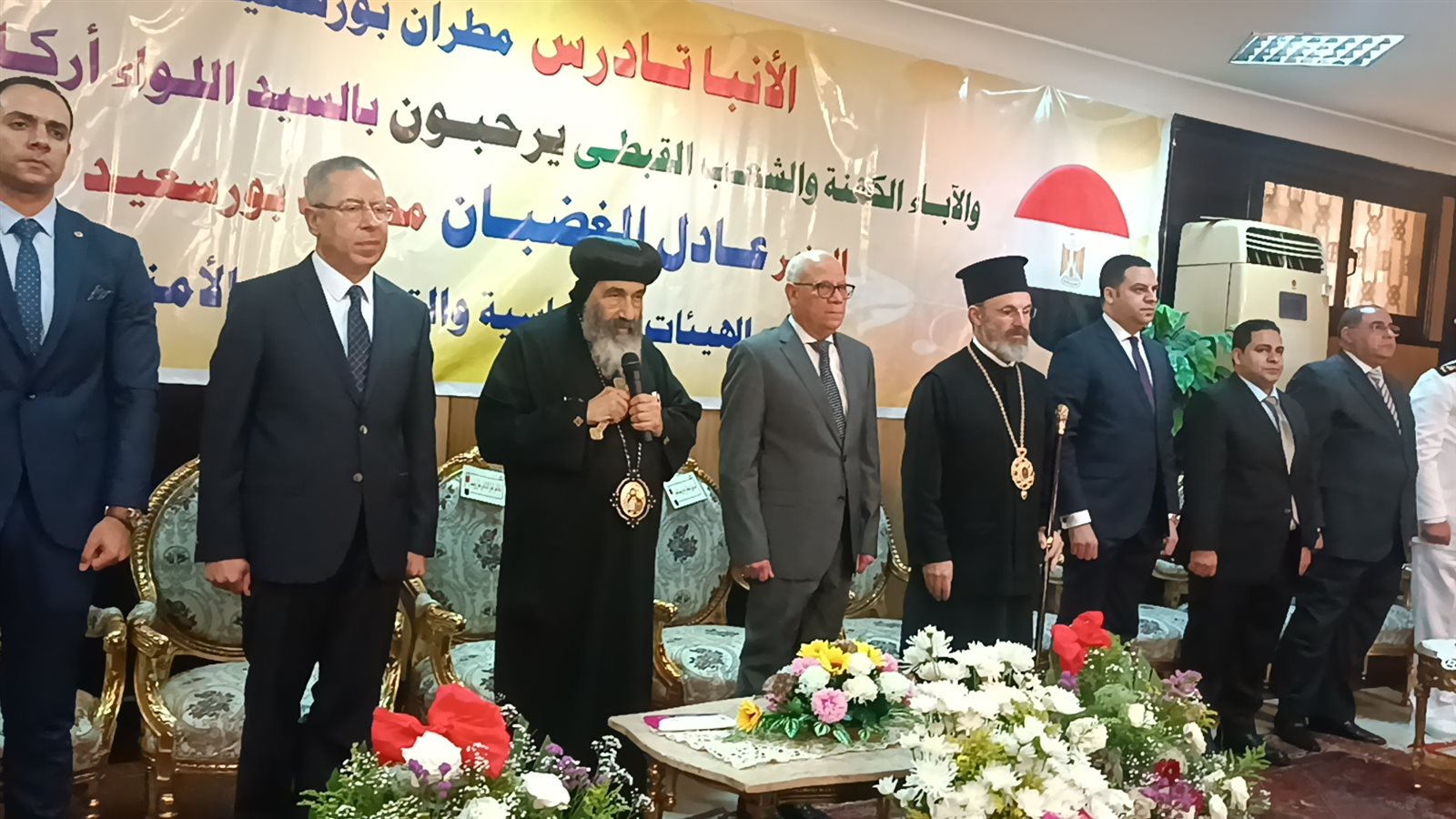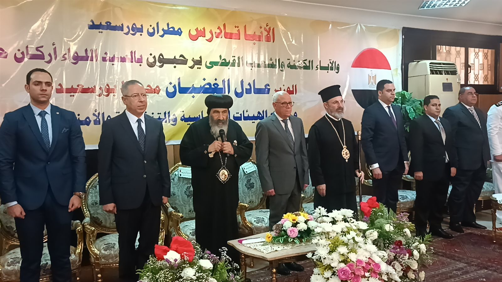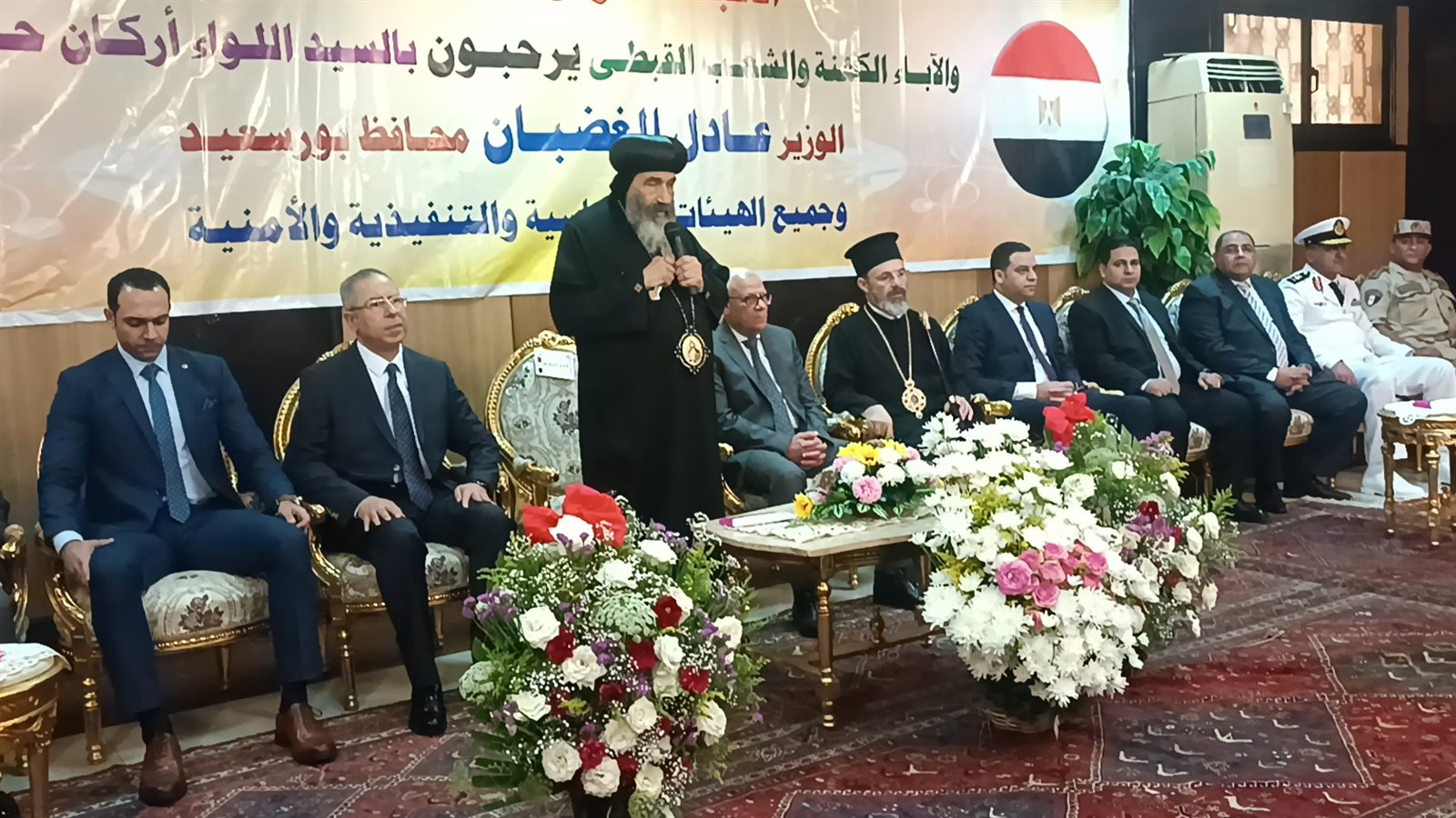 مطران بورسعيد يستقبل المهنئين بالوقوف دقيقة حداد على مدير أمن المحافظة السابق (فيديو)