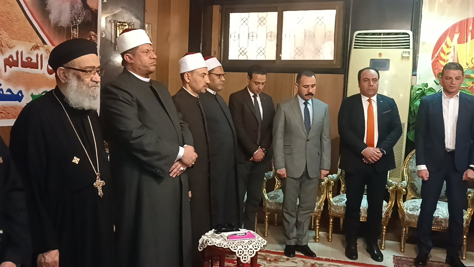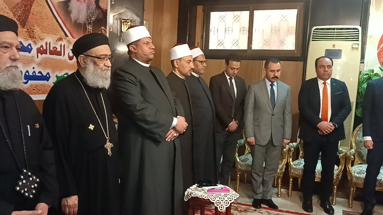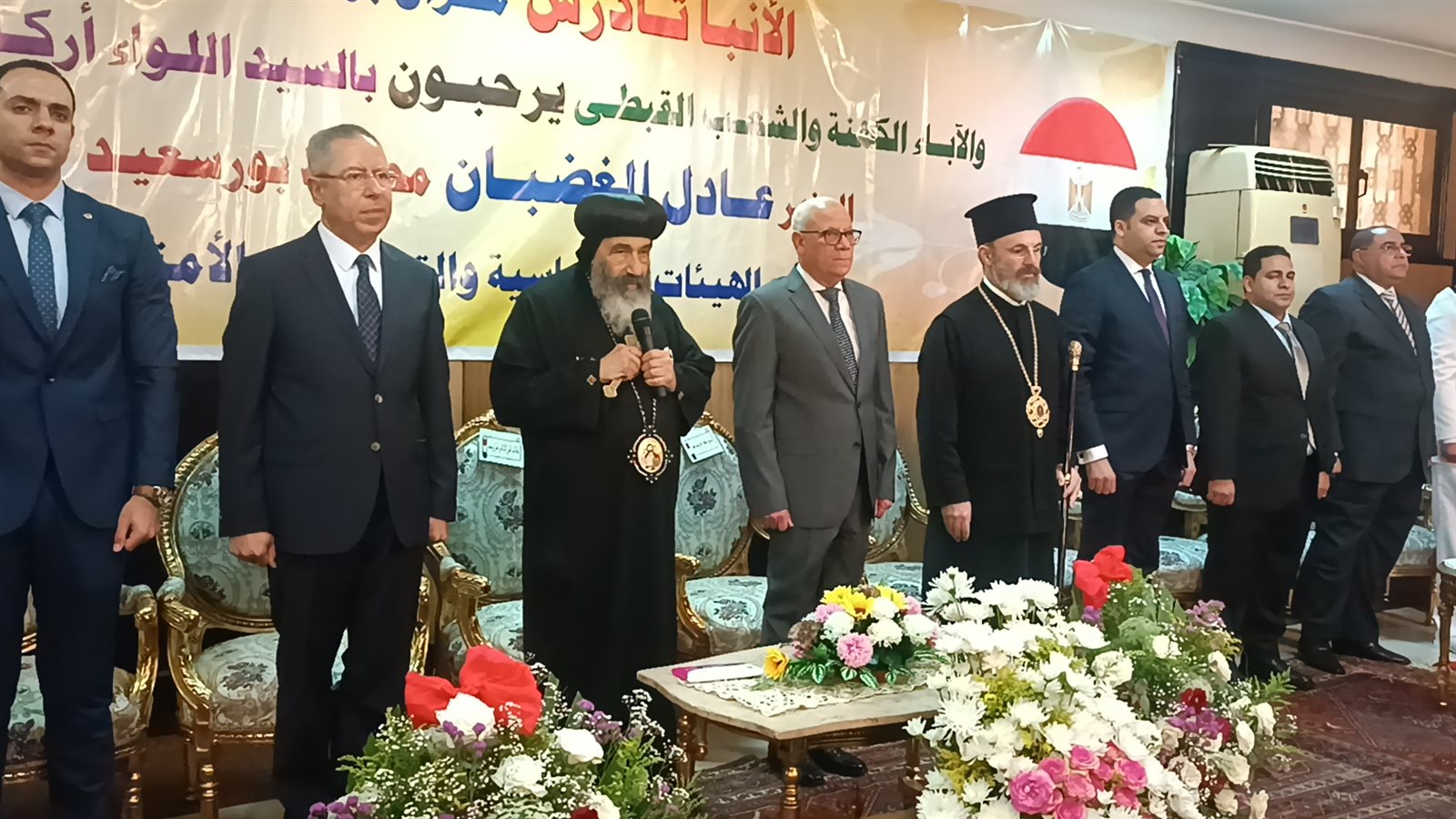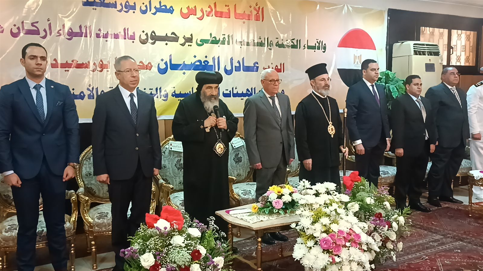 مطران بورسعيد يستقبل المهنئين بالوقوف دقيقة حداد على مدير أمن المحافظة السابق (فيديو)