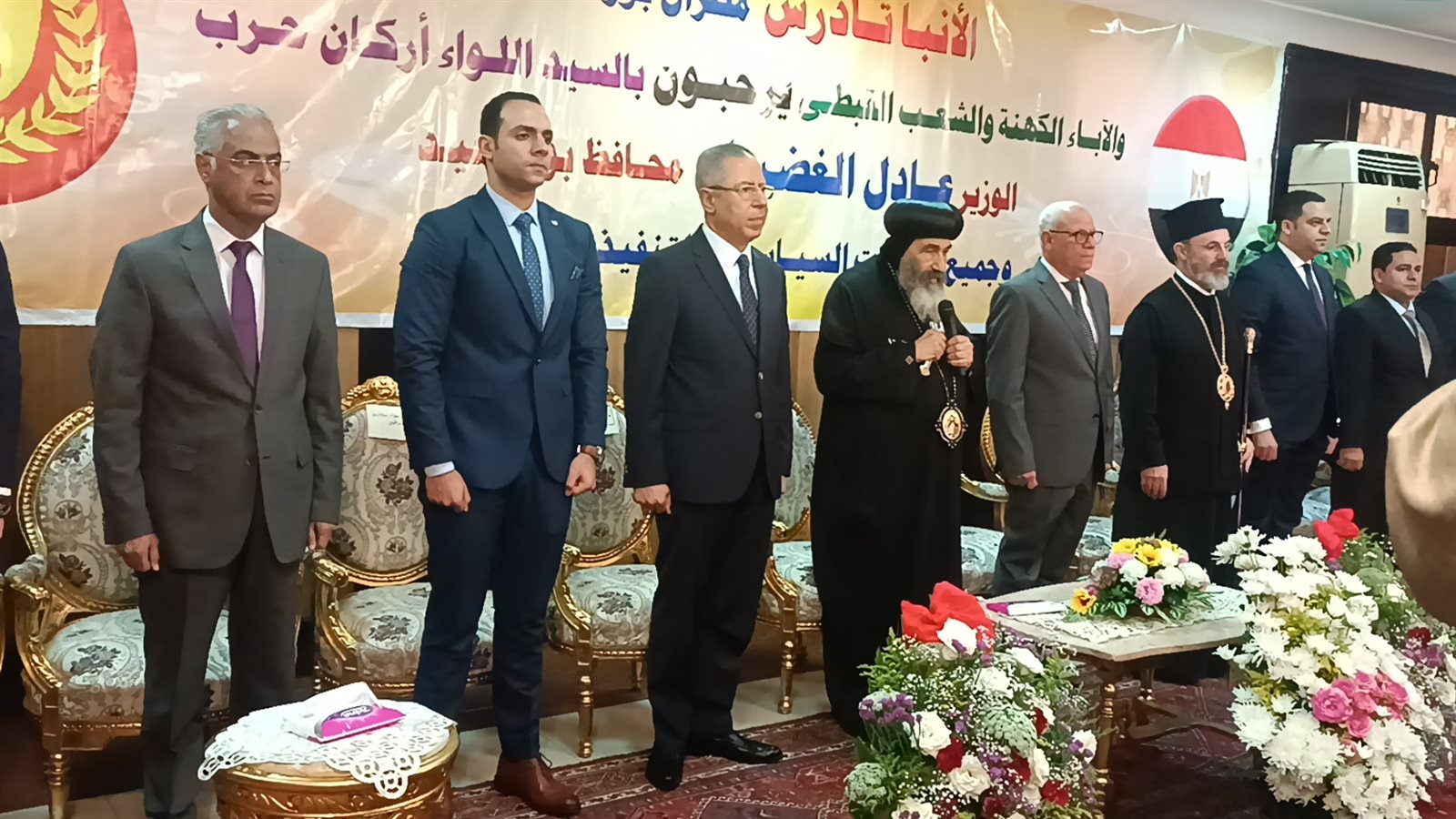 و عقب ذلك وجه "الأنبا تادرس" الشكر الي جميع المهنئين من قيادات المحافظة، مؤكدا على سعادته بحضور هذه الكوكبة للمشاركة فى احتفالات عيد القيامة المجيد، مشيرا إلى أن هذه فترة احتفالات لكل المصريين ومناسبات دينية هامة الجميع يحتفل بها سويا، مما يعكس روح الوحدة الوطنية بين ابناء الشعب الواحد.