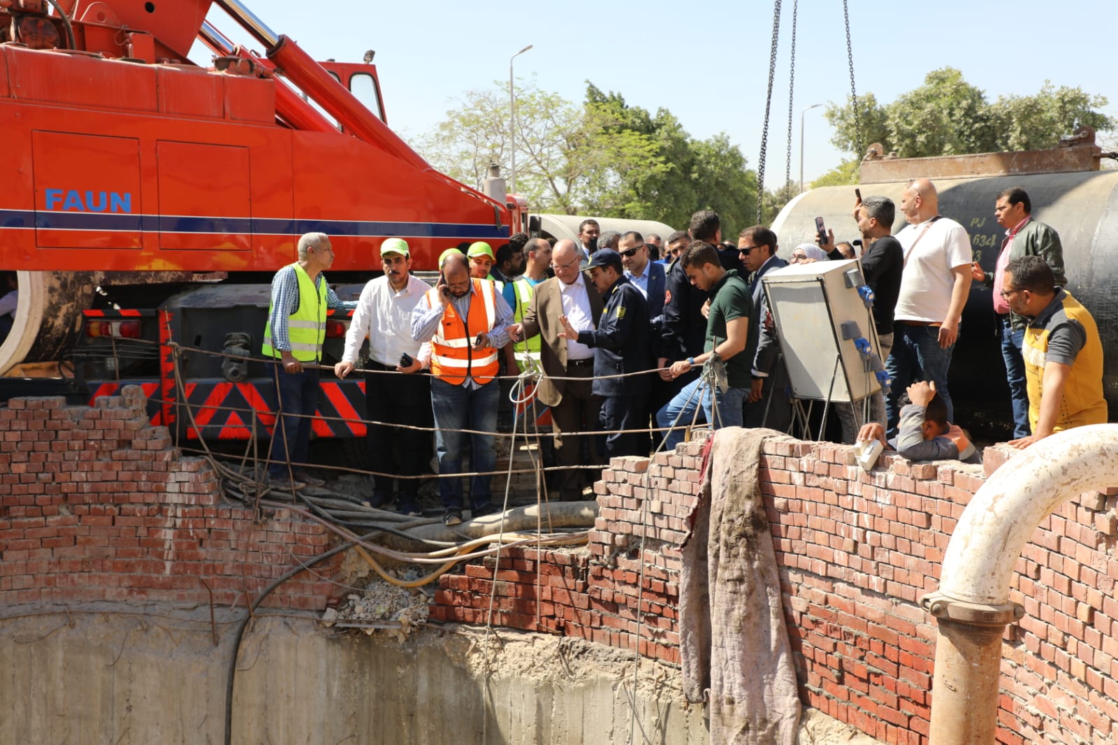 تعرضوا للاختناق أثناء الحفر، محافظ القاهرة يشرف على عملية إنقاذ العمال بحلوان
