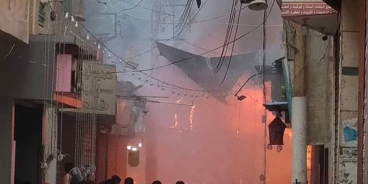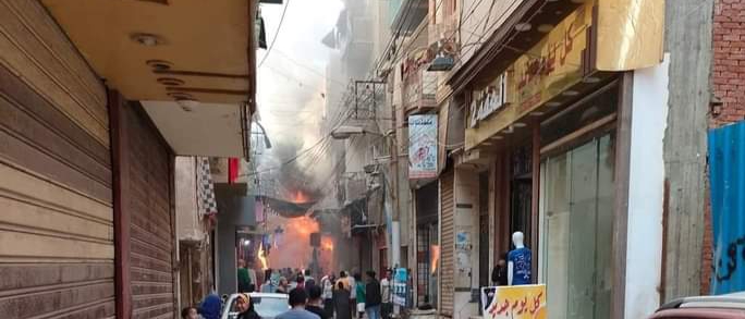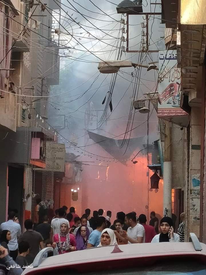 حريق في أكبر سوق للملابس الشعبية بمدينة الفيوم (صور)