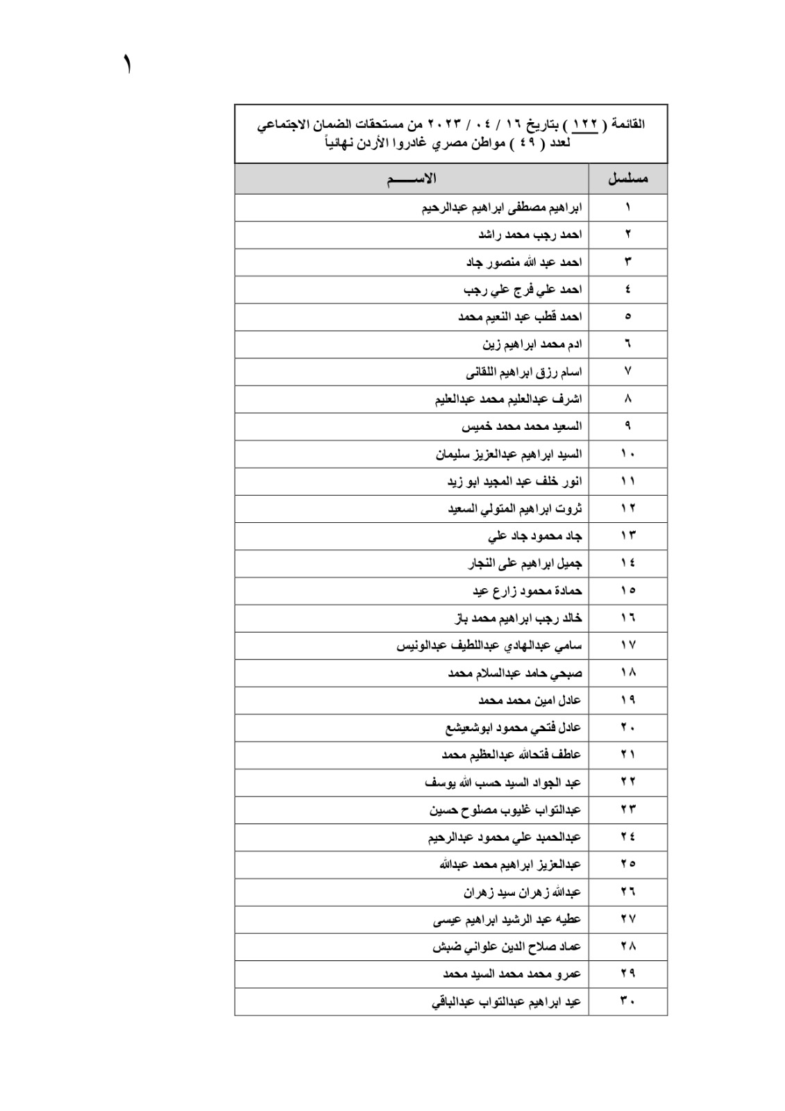 تحويل القائمة الـ 122 من مستحقات الضمان الاجتماعي لـ 49 عاملًا مصريًا (أسماء)