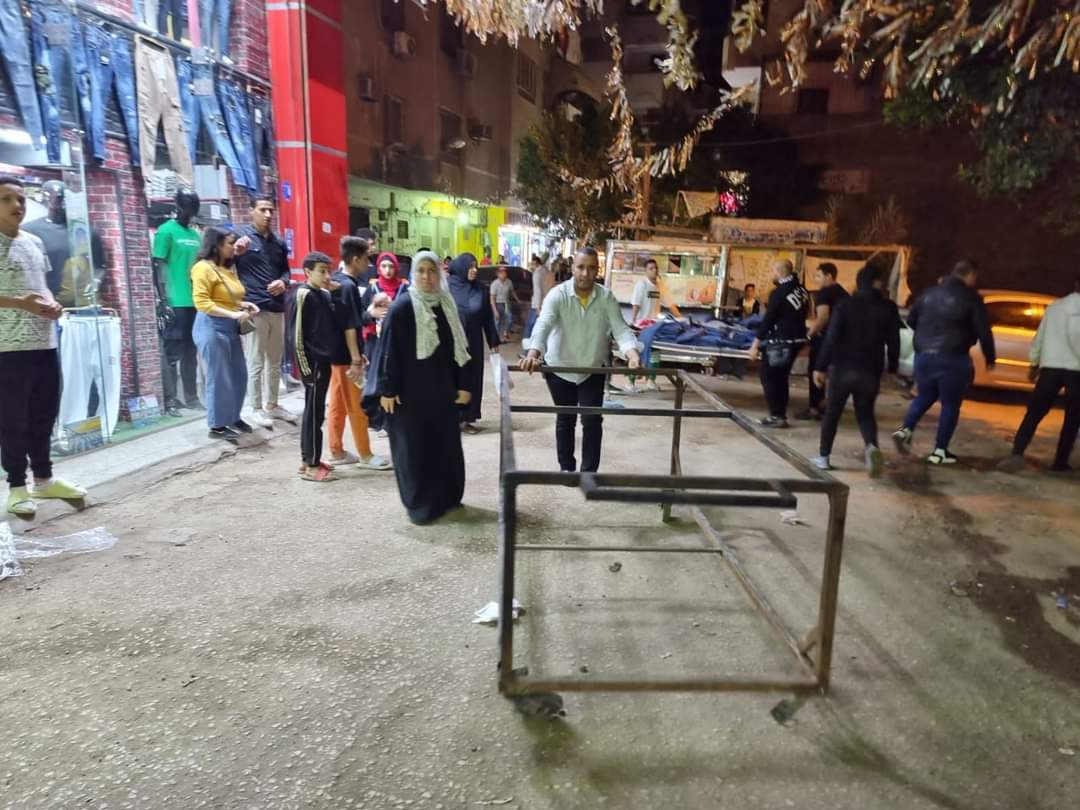 قامت الأجهزة التنفيذية بمحافظة الجيزة برفع الباعة الجائلين والمفترشين والمتعدين علي حرم الطريق العام واستاندات البضائع والمعروضات والتابعة للمحلات التجارية بشوارع العريش وضياء وسهل حمزة بحي الهرم واتخاذ الإجراءات القانونية حيال المخالفين.