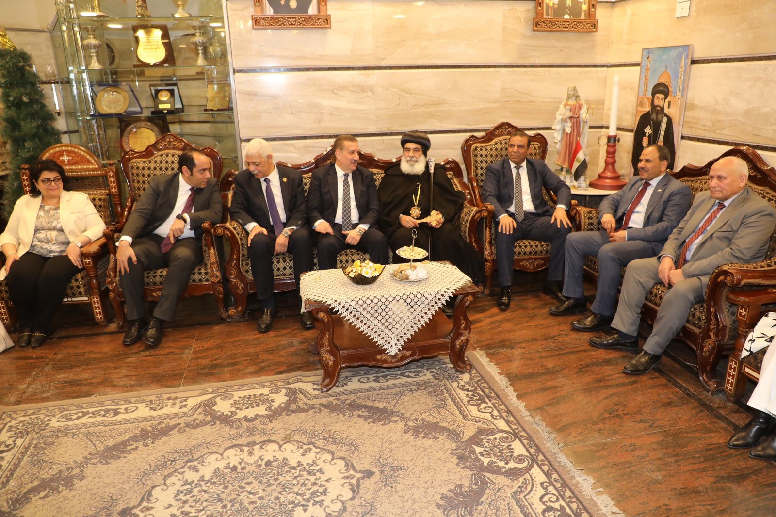 قدم محافظ المنوفية ورئيس الجامعة خالص التهاني القلبية لنيافة الأنبا بنيامين مطران المنوفية ورجال الكنيسة والأخوة الأقباط من مواطني المحافظة.