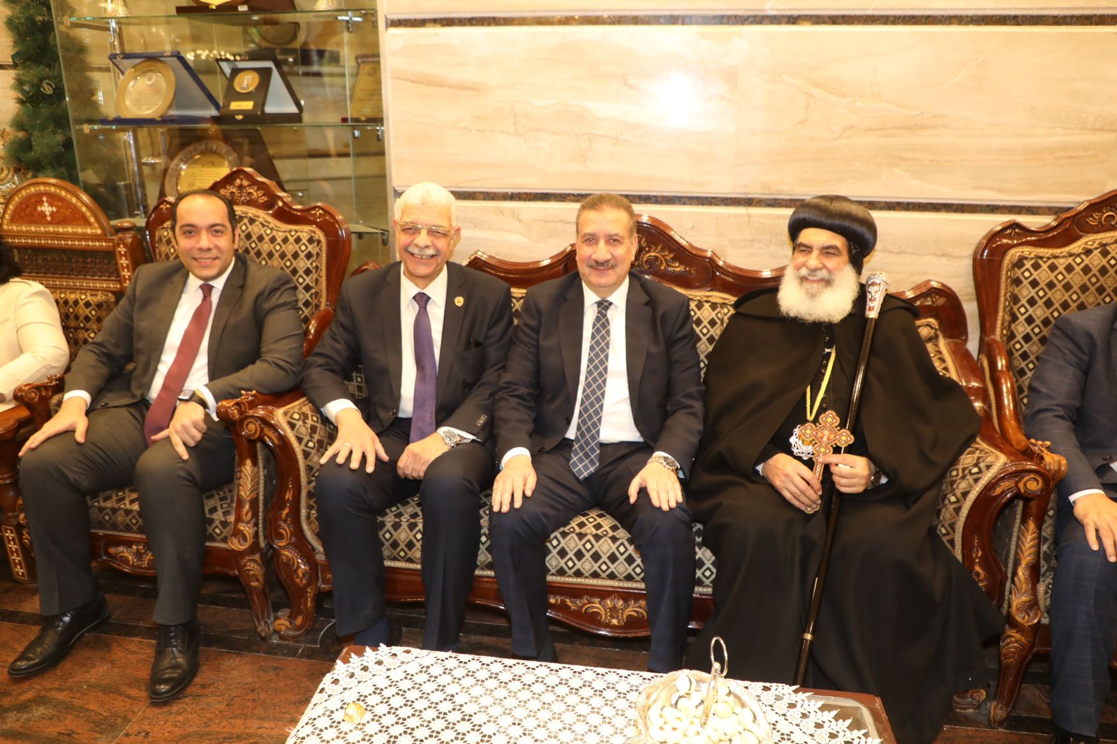 محافظ المنوفية ورئيس الجامعة يقدمان التهنئة للأنبا بنيامين بعيد القيامة المجيد