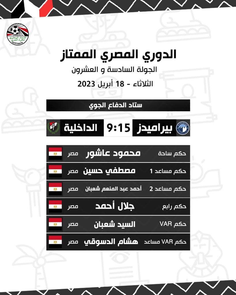 الدوري المصري، محمود عاشور حكما لبيراميدز والداخلية والعمراوي لإنبي وأسوان