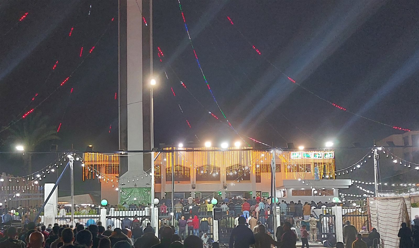 وجرى تبادل إمامة الصلاة مع الشيخ محمود آل بكر، وأذن للصلاة والتواشيح الدينية الشيخ قداح محمد.