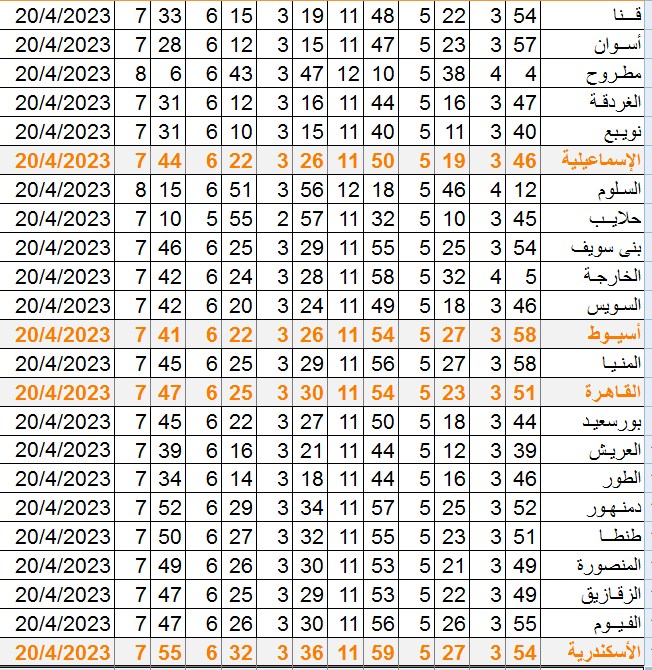مواقيت الصلاة اليوم وفقًا للتوقيت المحلي لمدينتي القاهرة والإسكندرية وعدد من مدن ومحافظات الجمهورية من واقع بيانات الهيئة العامة للمساحة