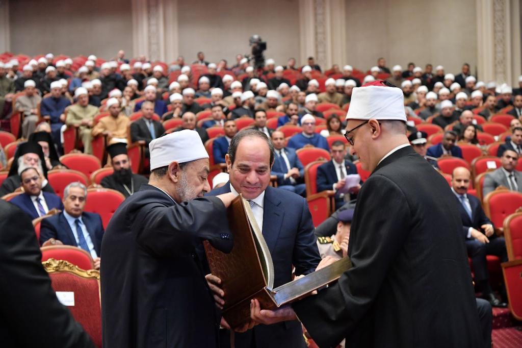 كما أهدى فضيلة الأمام الأكبر شيخ الأزهر الشريف، الرئيس السيسي هدية تذكارية خلال حفل وزارة الأوقاف بليلة القدر