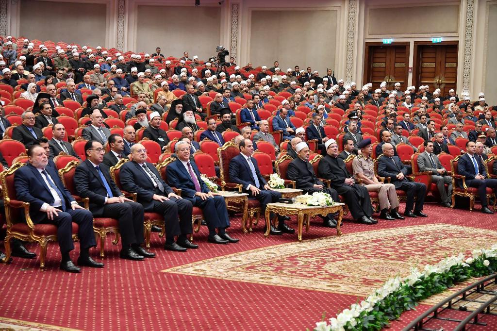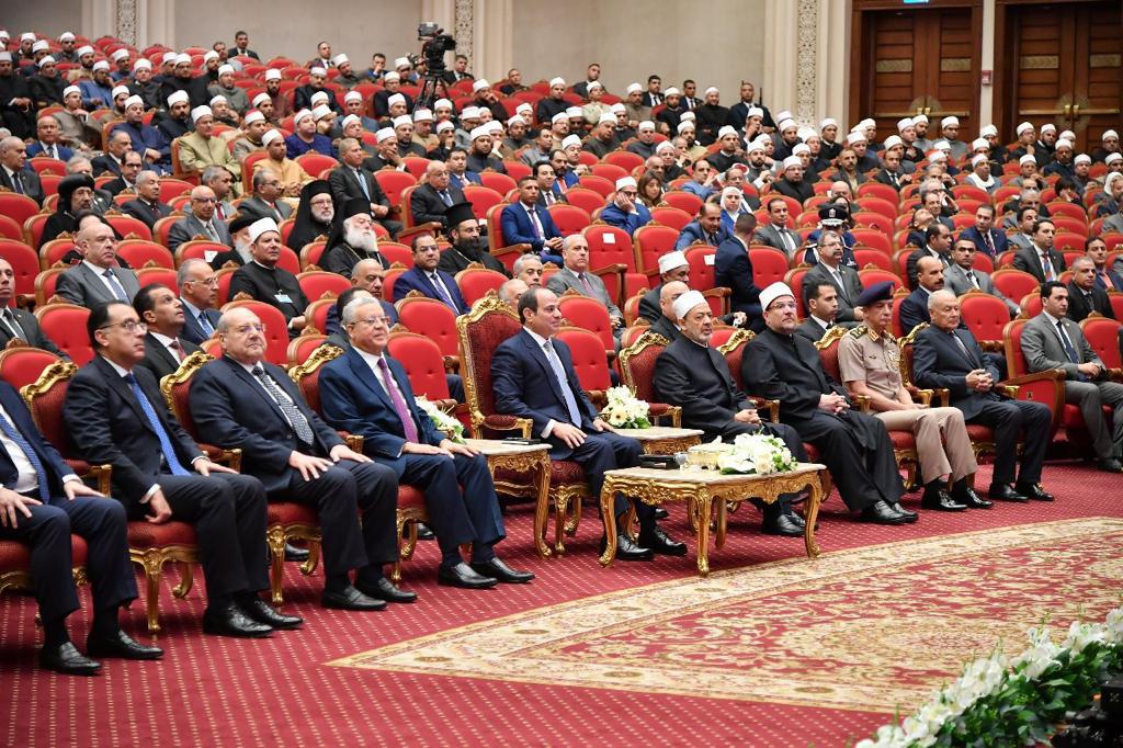 وأتوجه بالتحية أيضًا إلى رجال الأزهر الشريف ووزارة الأوقاف الأئمة والدعاة والقراء، معربًا عن تطلع الأمة كلها إلى مواصلة الجهد المحمود، لنشر العلم الديني الوسطي وتوضيح صحيح الإسلام، والتعريف بجوهره الحقيقي، كقوة دفع إنسانية هائلة، من أجل الخير، والتقدم، والازدهار.