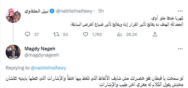 البداية كانت عندما كتب نبيل الحلفاوي تغريدة علق فيها على هدف كهربا في مرمى سموحة، فقال: "كهربا خدها حلو أوي. الحمد لله الهدف ده يعالج تأثير القرار إياه ويعالج تأثير ضياع الفرص السابقة."