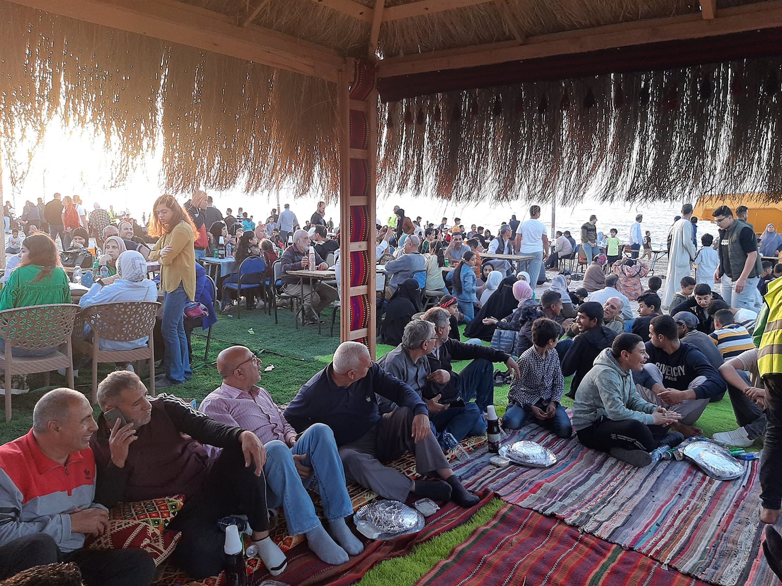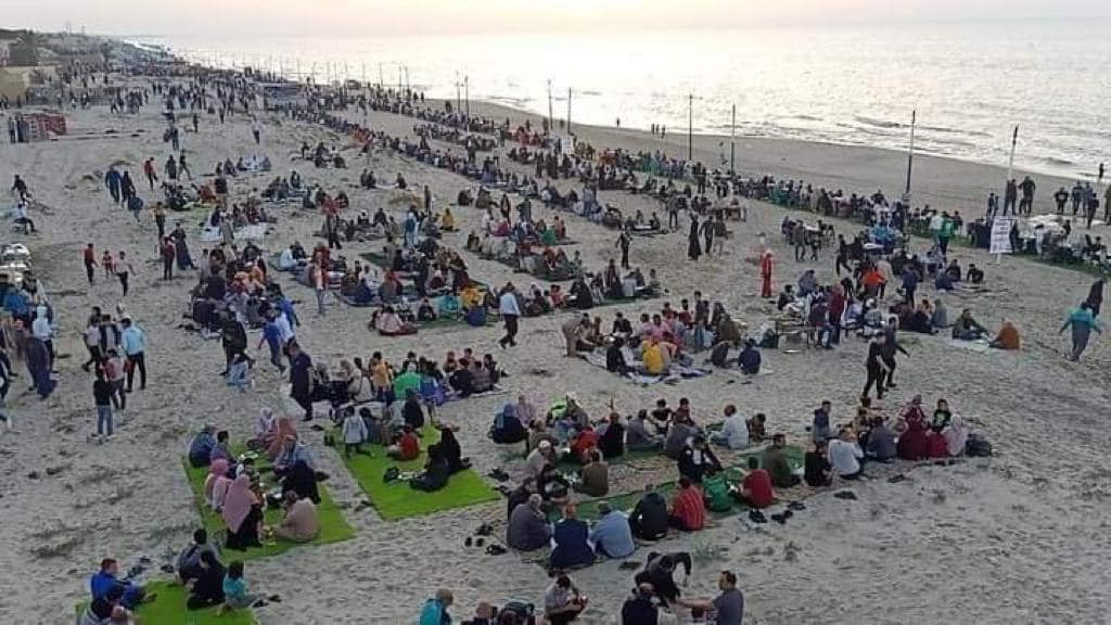 مائدة إفطار جماعي على شاطئ بحر العريش