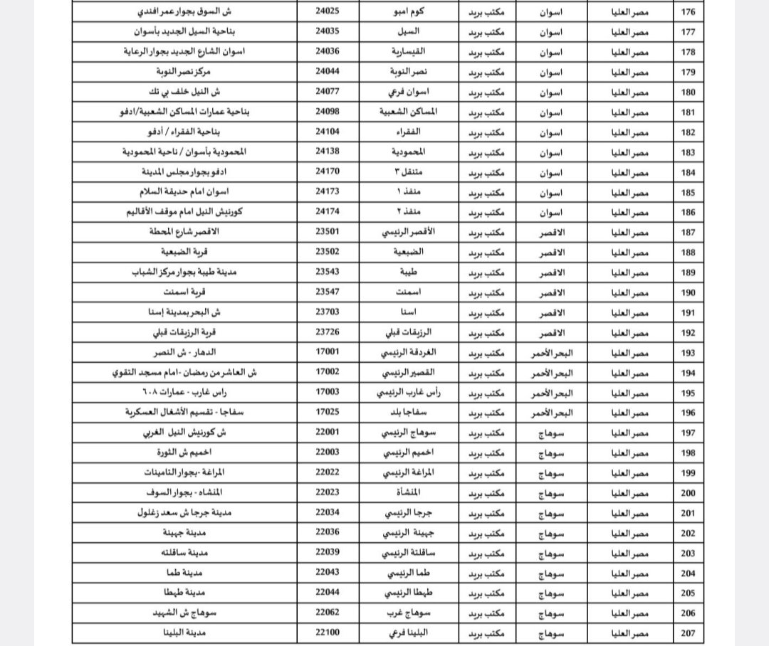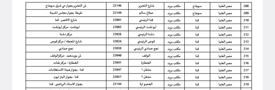 ننشر خلال السطور التالية عناوين مكاتب البريد بمحافظات مصر العليا ـ الصعيد ـ التي تعمل خلال إجازة العيد.