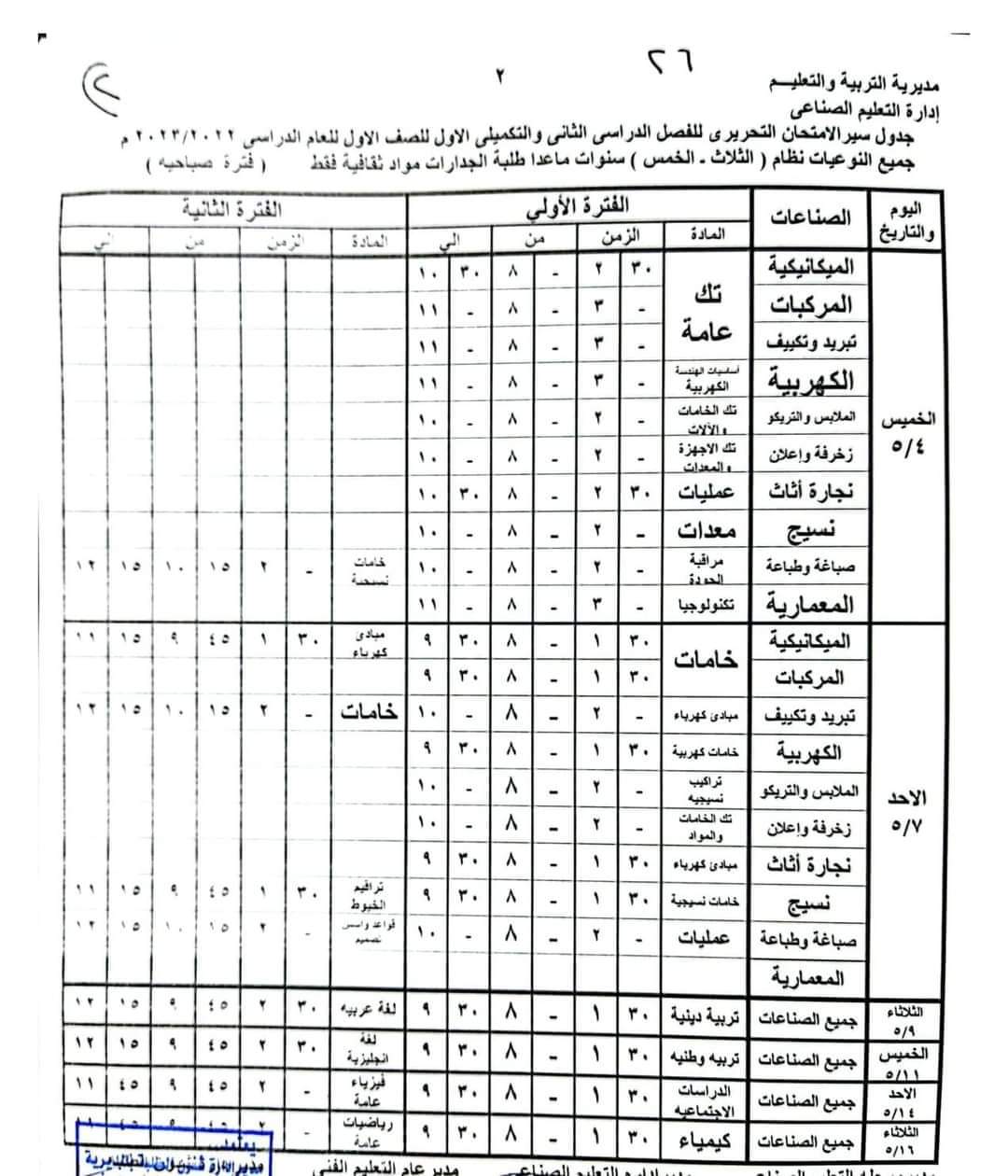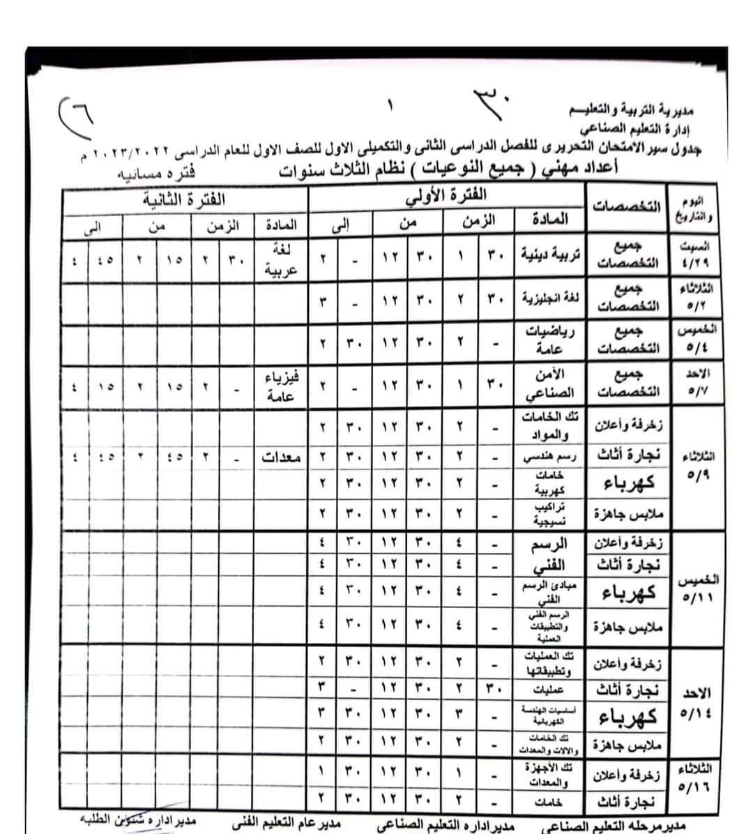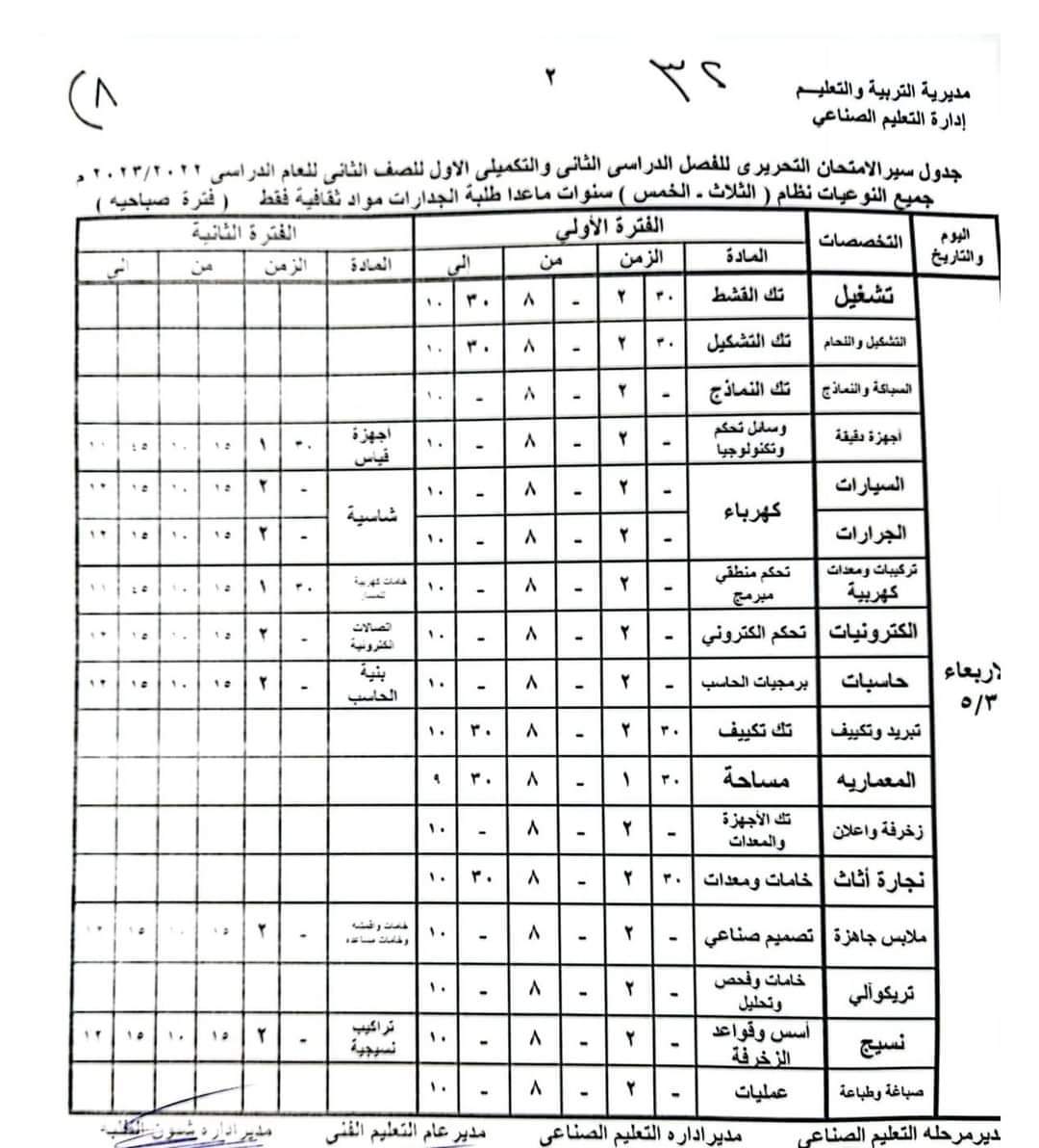 ننشر فيتو جداول امتحانات الصفين الأول والثاني الثانوي الصناعى نظام الثلاث والخمس سنوات، الفصل الدراسي الثاني للعام الدراسي ٢٠٢٢/ ٢٠٢٣ نظام الثلاث والخمس سنوات، بمحافظة المنيا