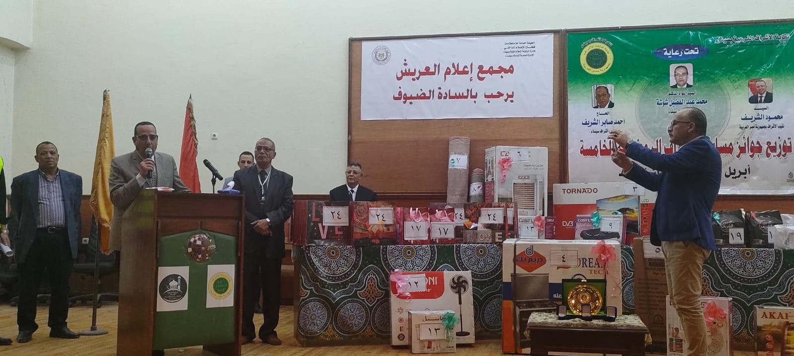وأقيمت الاحتفالية بمركز اعلام العريش بحضور اللواء محمد عبد الفضيل شوشة محافظ شمال سيناء وأحمد صابر الشريف نقيب الأشراف بشمال سيناء والشيخ محمود مرزوق مدير عام أوقاف شمال سيناء والشيخ عبد الكريم الشريف شيخ عائلة الأشراف والنائب فايز ابراهيم حرب عضو مجلس النواب الى جانب ابراهيم وهبى الشريف وجميل وهبى الشريف الرعاة الداعمون للمسابقة ومقدمى الجوائز.