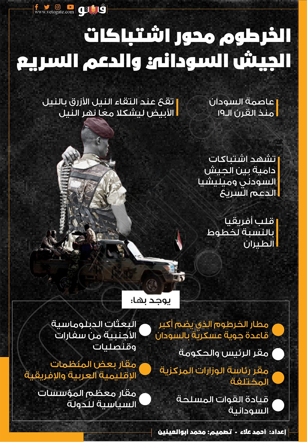 الخرطوم محور اشتباكات الجيش السوداني والدعم السريع (إنفوجراف) الإثنين 24/أبريل/2023 - 09:00 م 4/24/2023 9:00:50 PM الخرطوم، فيتو احمد علاء شارك طباعة 18 حجم الخط شارك طباعة الخرطوم السودان اشتباكات السودان الجيش السوداني مليشيا الدعم السريع