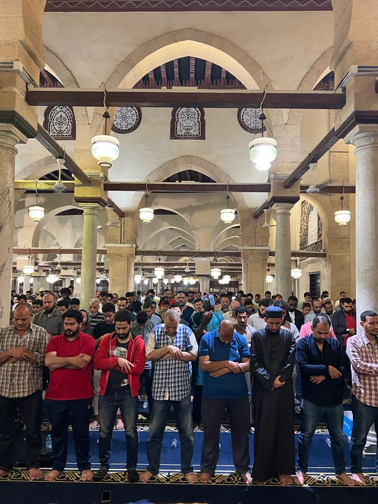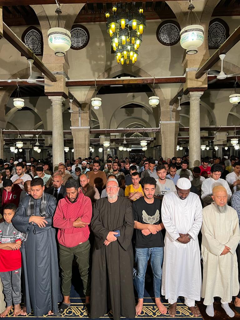 أدّت جموع المصلين في الجامع الأزهر صلاتي العشاء والتراويح لليلة التاسع والعشرين من رمضان لعام ١٤٤٤ه، حيث شهدت أروقة وساحات الجامع الأزهر منذ عصر اليوم إقبالا كبيرا من المصلين، المصريين والوافدين، الذين حرصوا على أداء صلاتي العشاء والتراويح في ليلة التاسع والعشرين من شهر رمضان، راجين من الله تعالى أن يغفر لهم ما تقدم من ذنبهم، وأن يبلغهم رمضان أعواما عديدة وأزمنة مديدة.