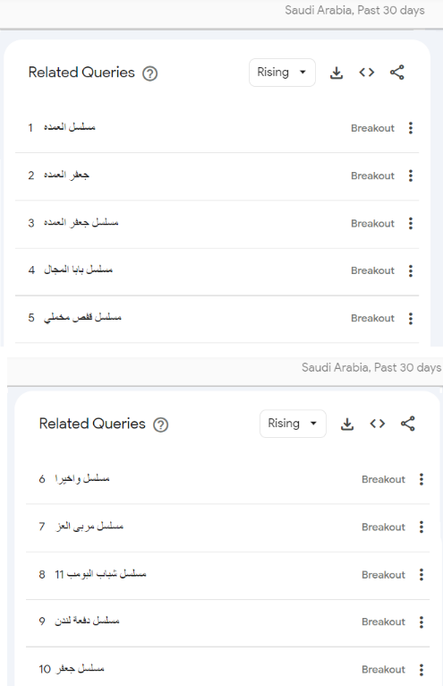 وجاءت مسلسلات رمضان التي تصدر تريند جوجل بشكل يومي كالتالي: