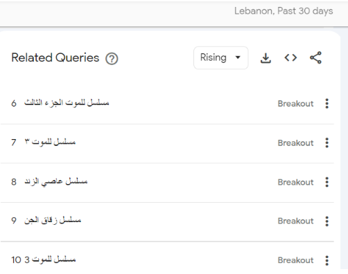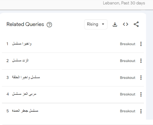 أما في لبنان فإن قائمة الأكثر تصدرًا للترند في رمضان على جوجل كالتالي: