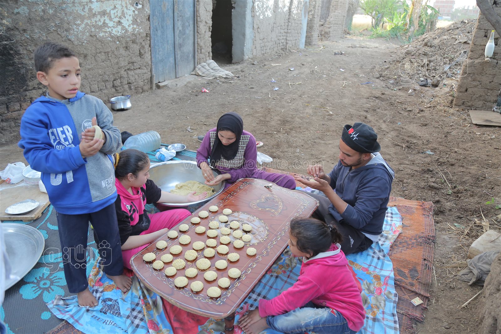 فيجتمع الجميع الأطفال وربات المنازل والبنات والشباب والجيران أيضا للمشاركة في صناعة الكحك، وفي الريف الكل يجتمع أمام الفرن البلدي المصنوع من الطوب اللبن.