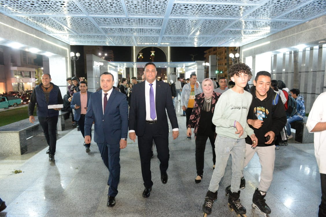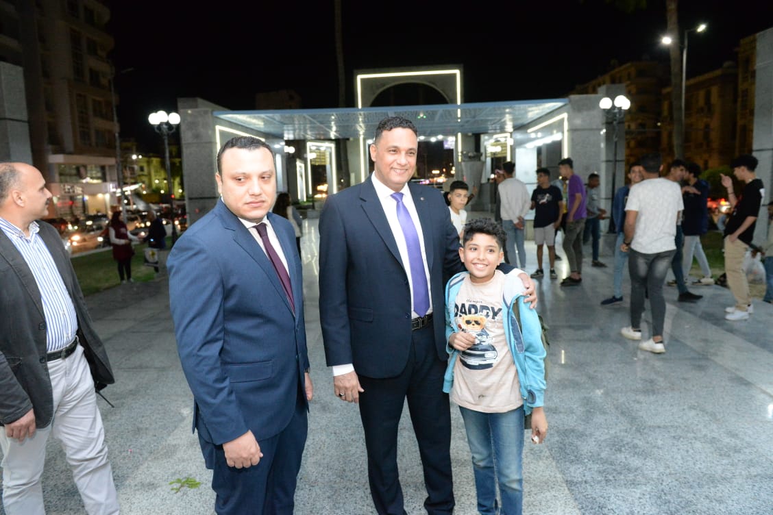تجول الدكتور أيمن مختار محافظ الدقهلية وسط المواطنين داخل النصب التذكاري للشهداء أمام مبنى ديوان عام المحافظة ليقدم لهم التهنئة بمناسبة العيد ويوزع عليهم الحلوى.