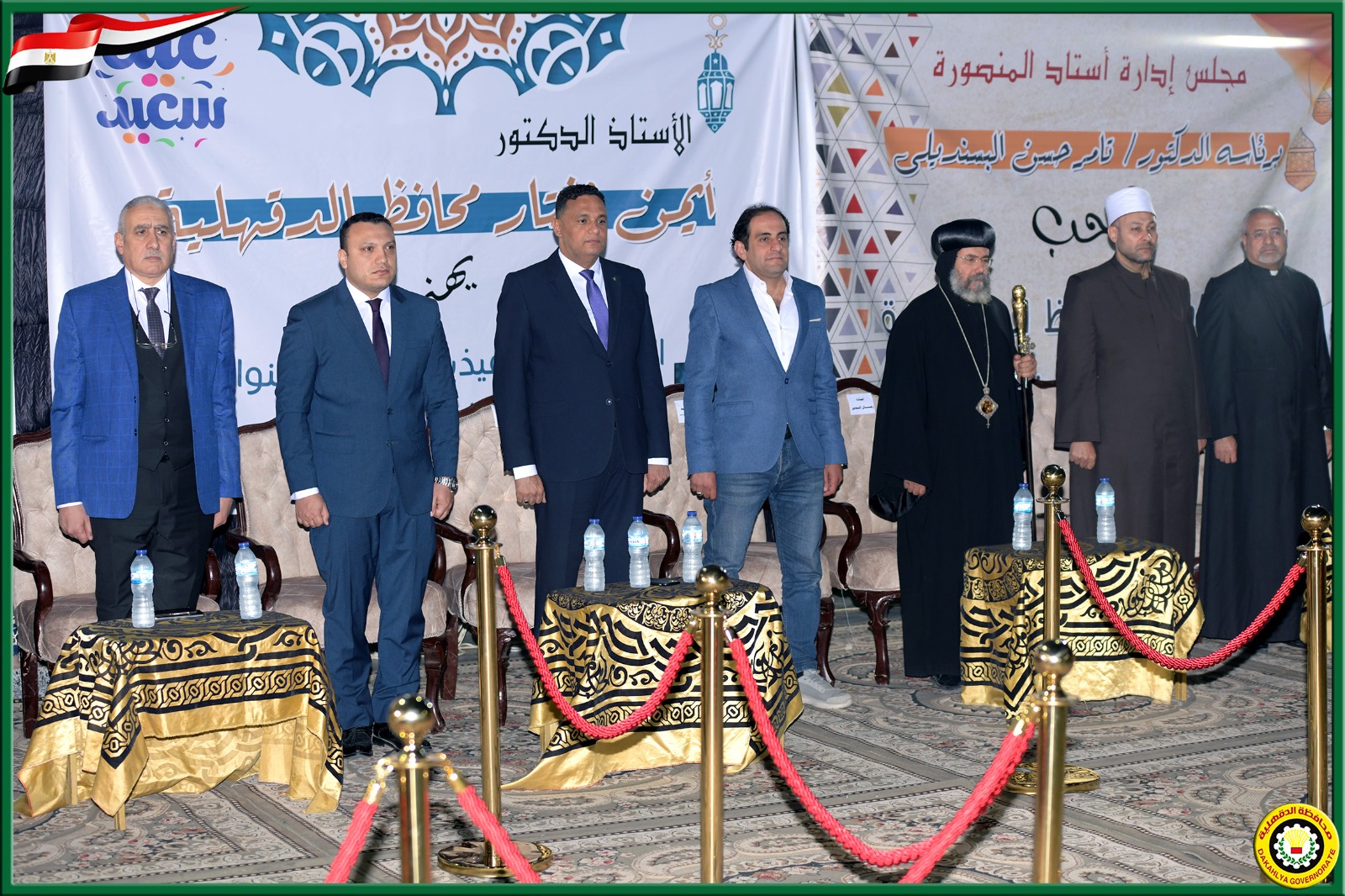 جاء ذلك عقب استقبال الدكتور أيمن مختار محافظ الدقهلية، بحضور الدكتور هيثم الشيخ نائب المحافظ، واللواء ايمن الشريف السكرتير العام للمحافظة، القيادات التنفيذية والشعبية ورجال الدين وأعضاء مجلسي النواب والشيوخ لتقديم التهنئة بمناسبة عيد الفطر المبارك بإستاد المنصورة الرياضي.