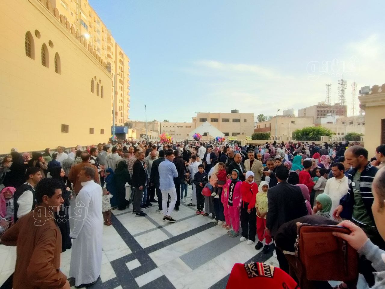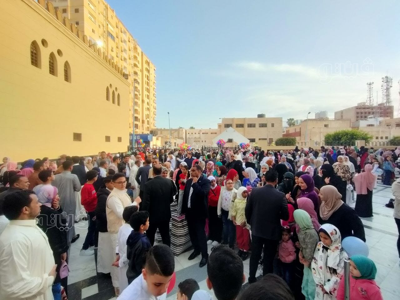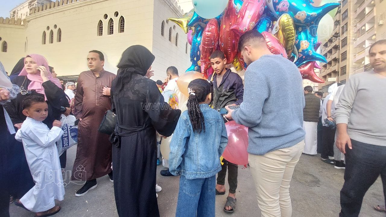 واصطحب الأهالي أطفالهم وأبناءهم بصلاة عيد الفطر، مع توزيع الهدايا والبلالين على الأطفال احتفالا بالعيد.