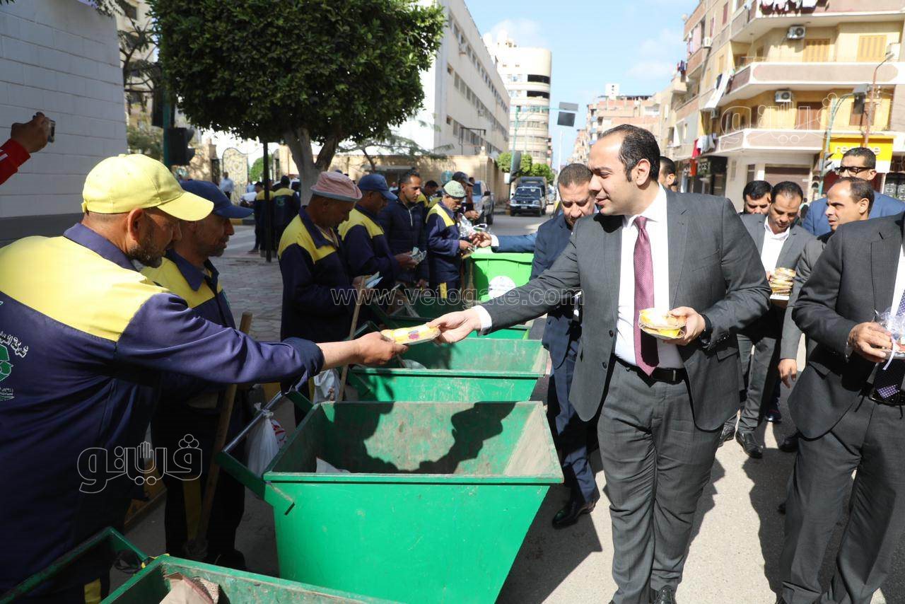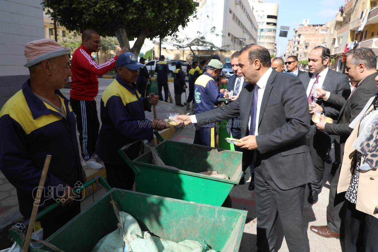 محافظ المنوفية يوزع كوبونات مواد غذائية مجانية وكعك العيد على عمال النظافة (صور)
