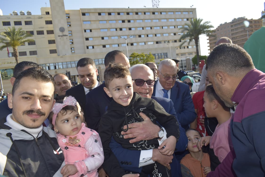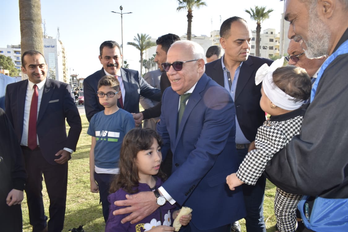 وتمنى محافظ بورسعيد للزائرين قضاء عطلة سعيدة والاستمتاع بالحدائق والمتنزهات والمعالم السياحية المميزة بالمحافظة، وحرص اللواء عادل الغضبان على التقاط الصور التذكارية مع المواطنين والأطفال المتواجدين بالميدان، وسط أجواء من الفرحة والسعادة والاحتفالات.