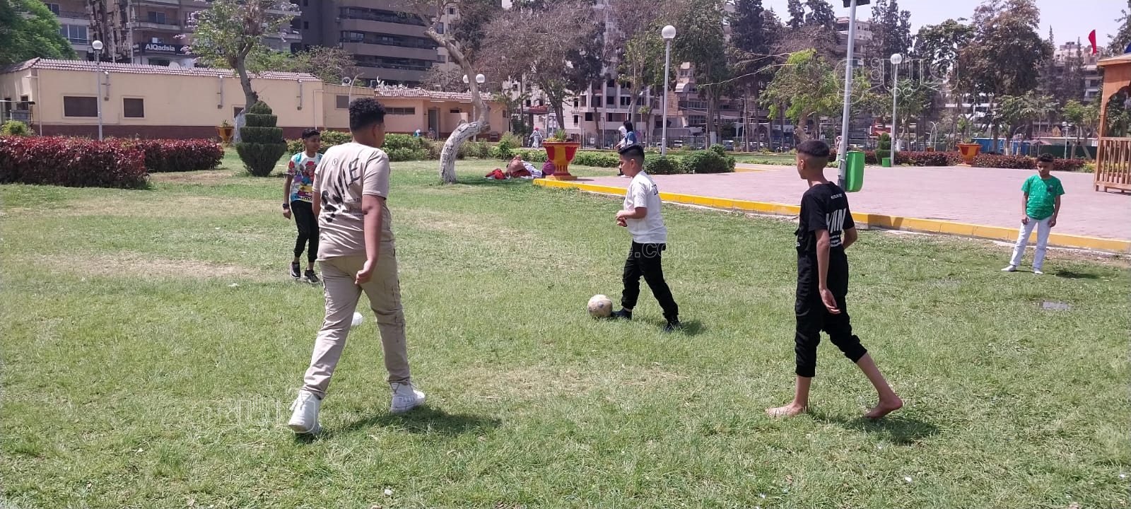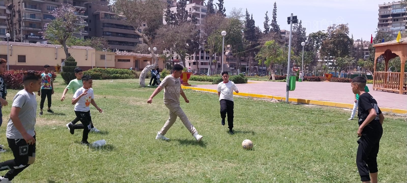 لعبوا الكرة وافترشوا الأرض.. مظاهر احتفال الأهالي بعيد الفطر في حديقة الطفل (فيديو وصور)