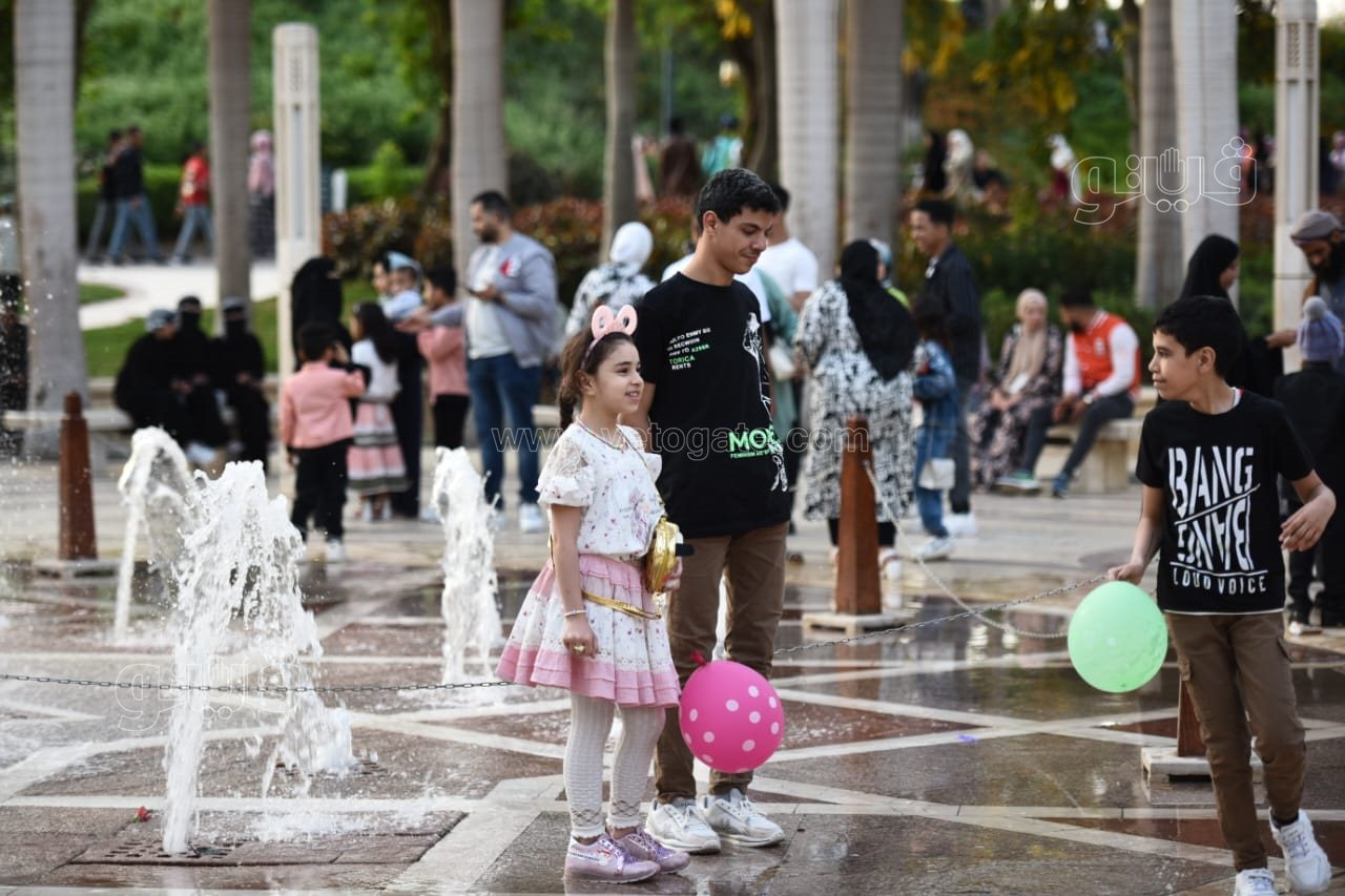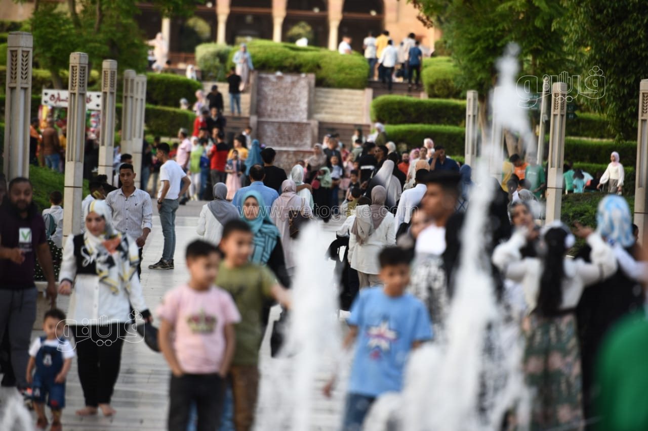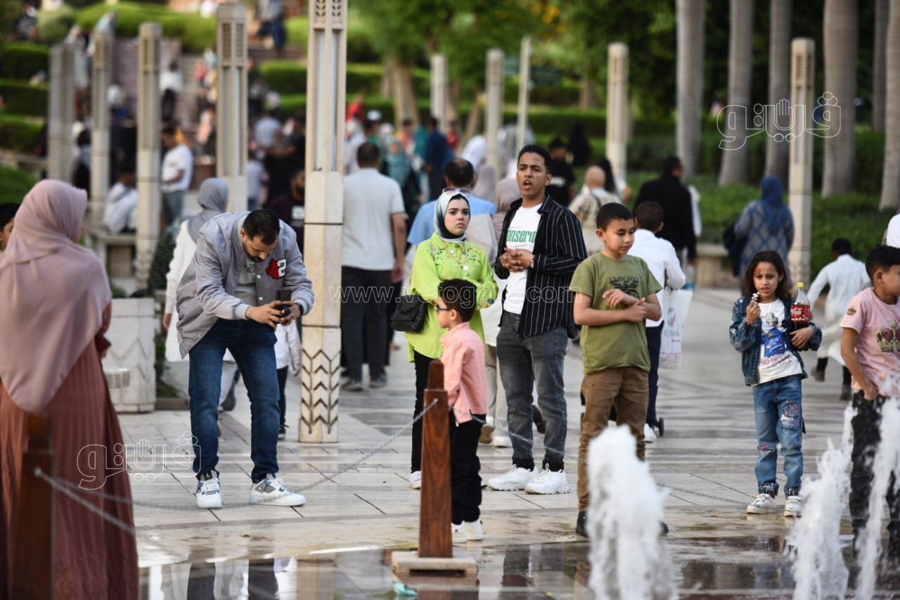 اللعب مع النافورة أبرز احتفالات المواطنين بأول أيام العيد في حديقة الأزهر (صور)